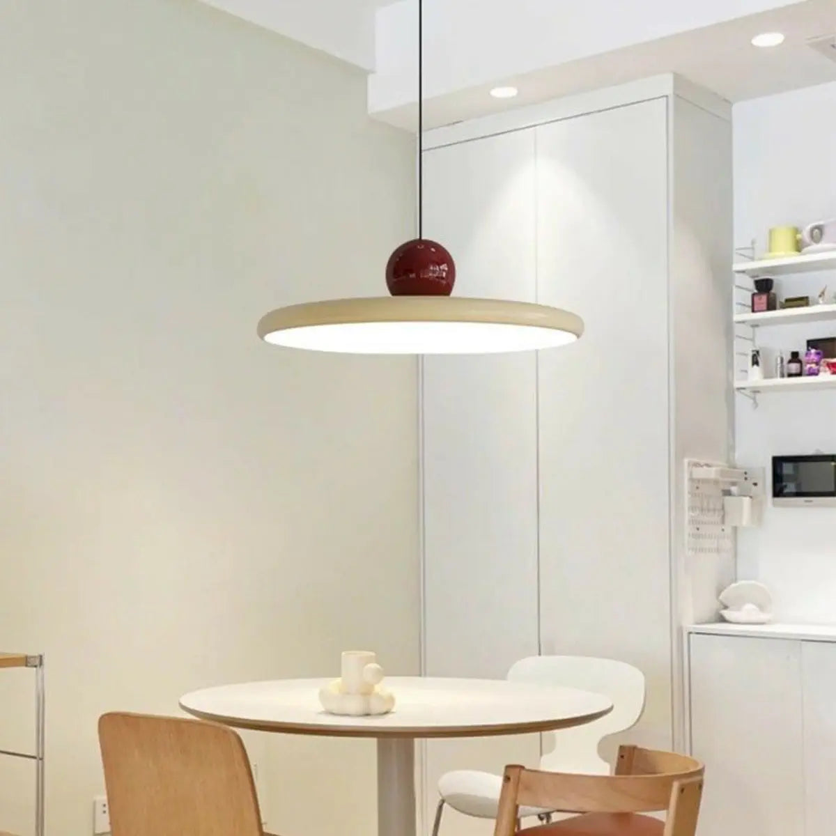 ZOWALA - Modern Cream Disc Red Accent Pendant Light