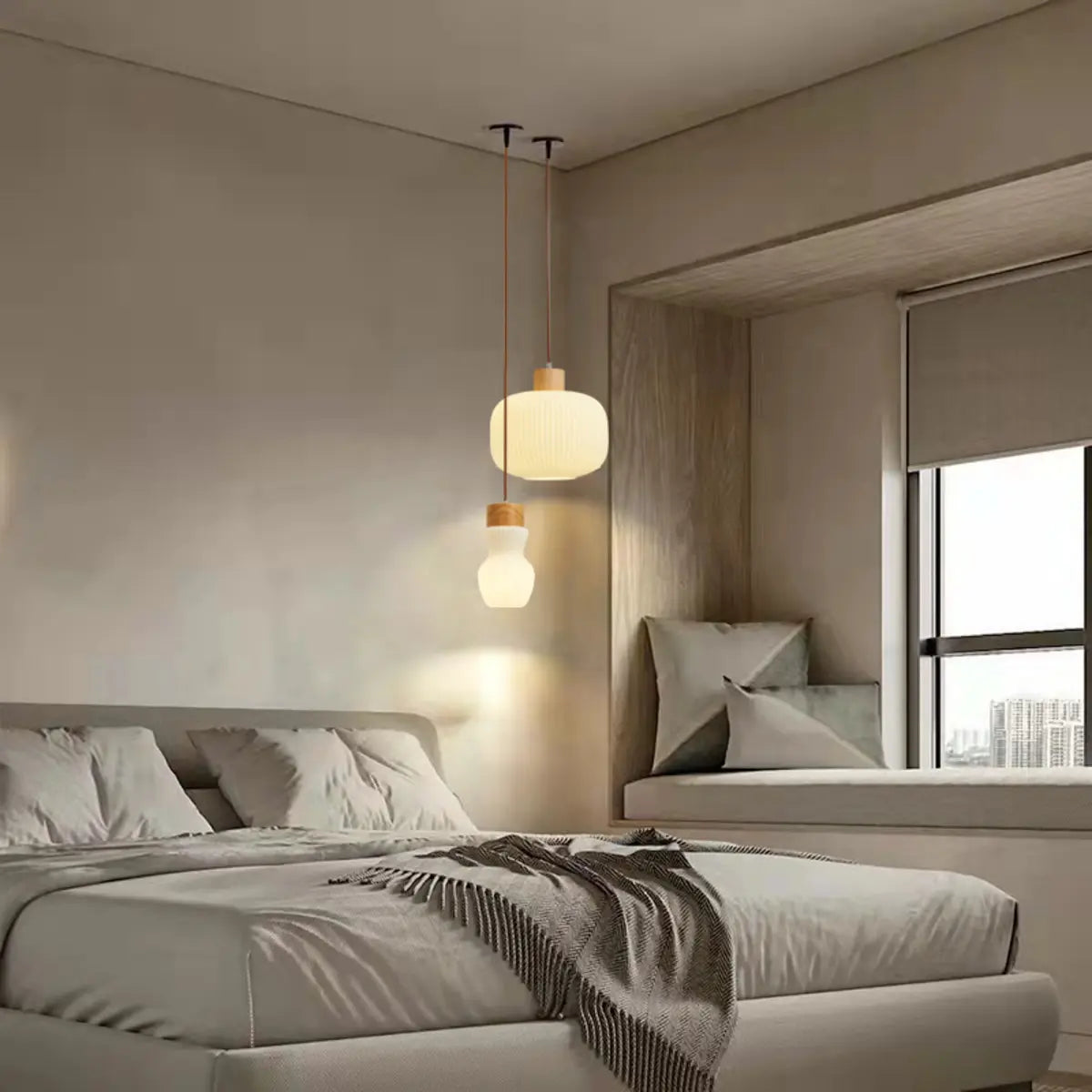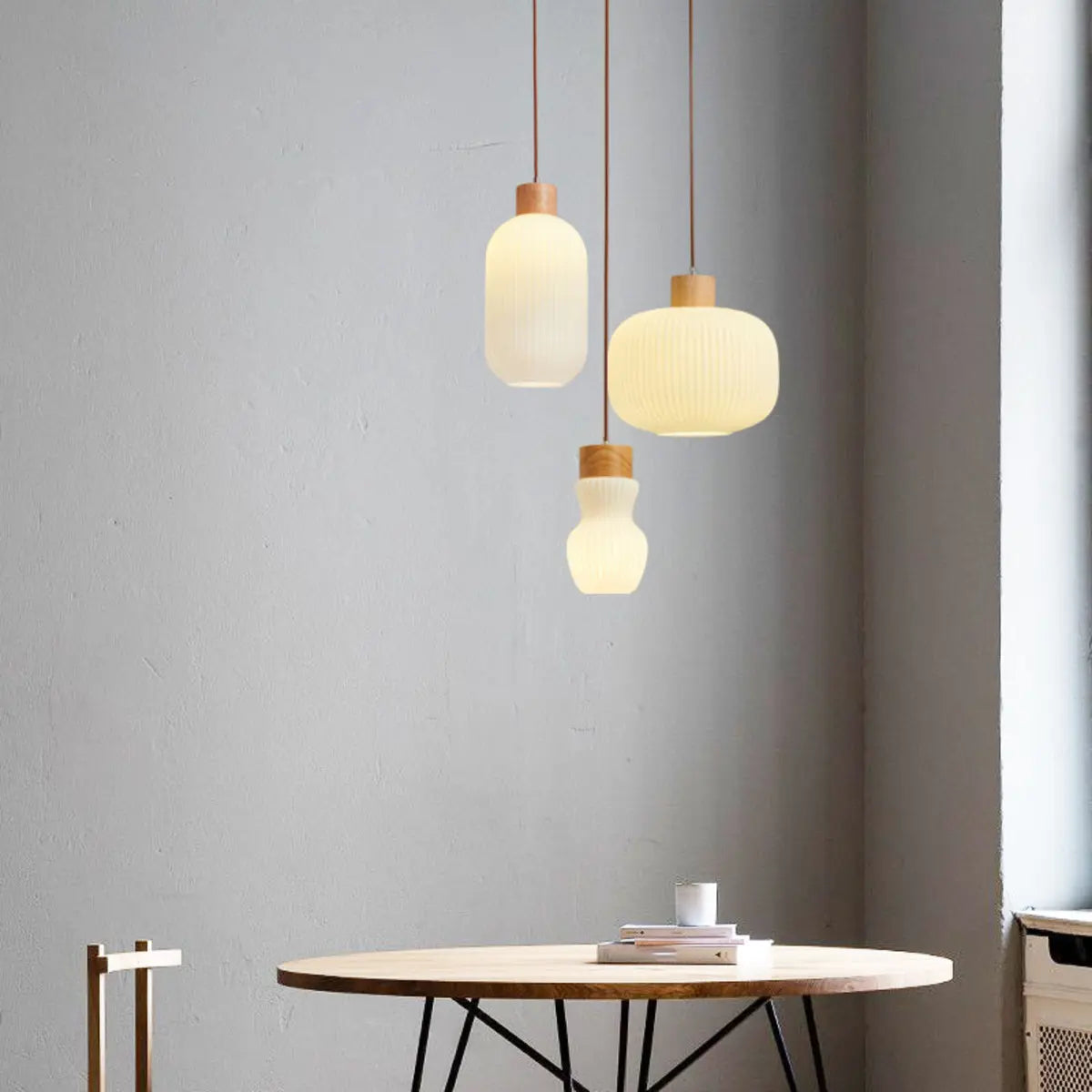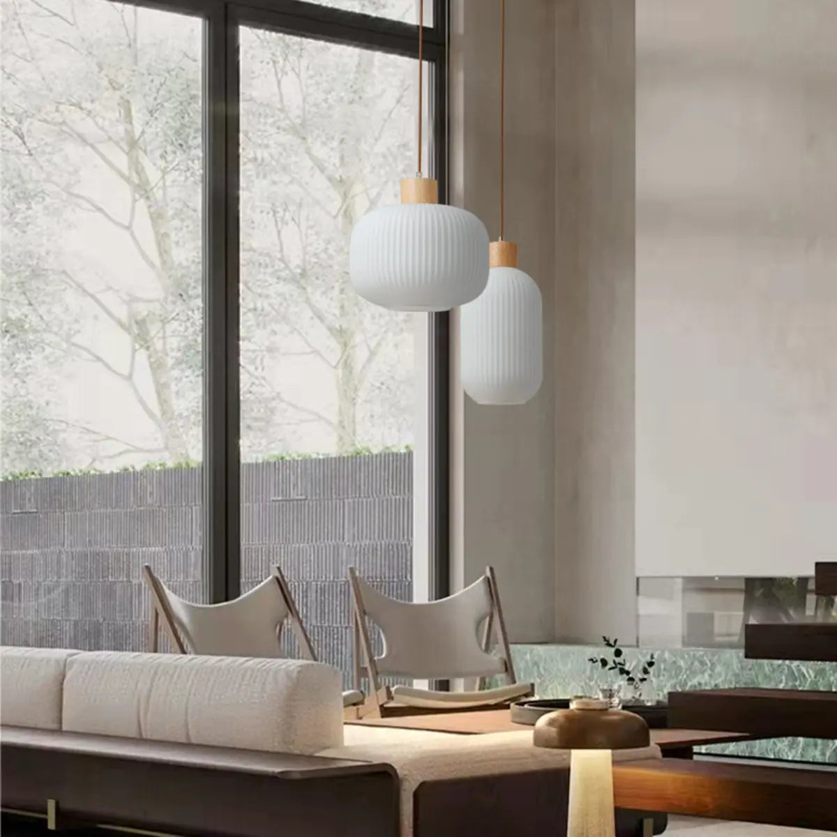 ZOWALA - Modern Cream Ribbed Glass Pendant Light
