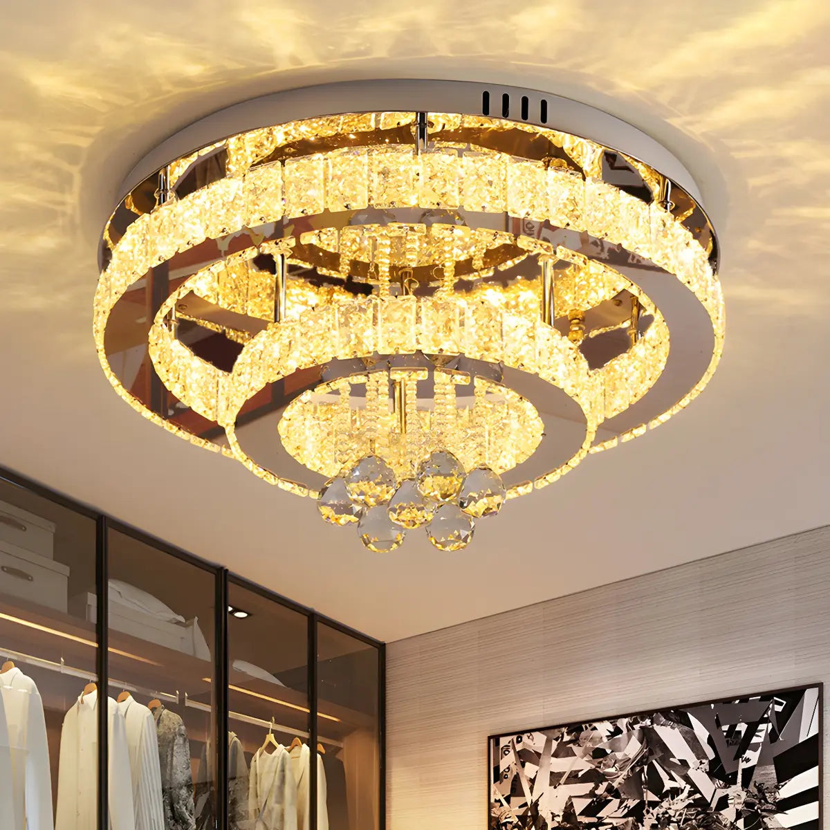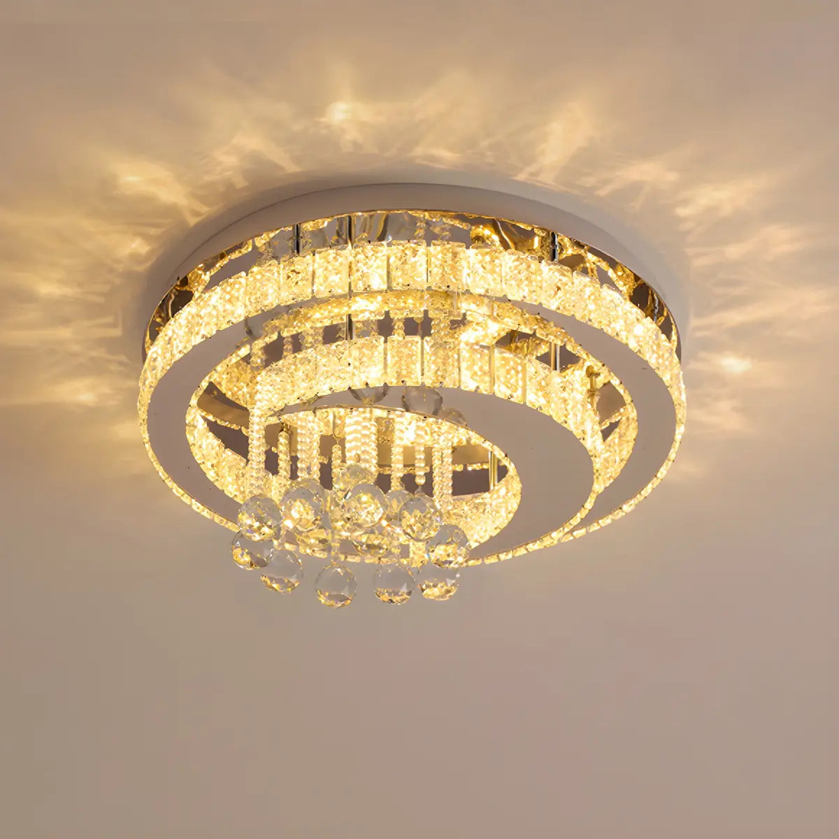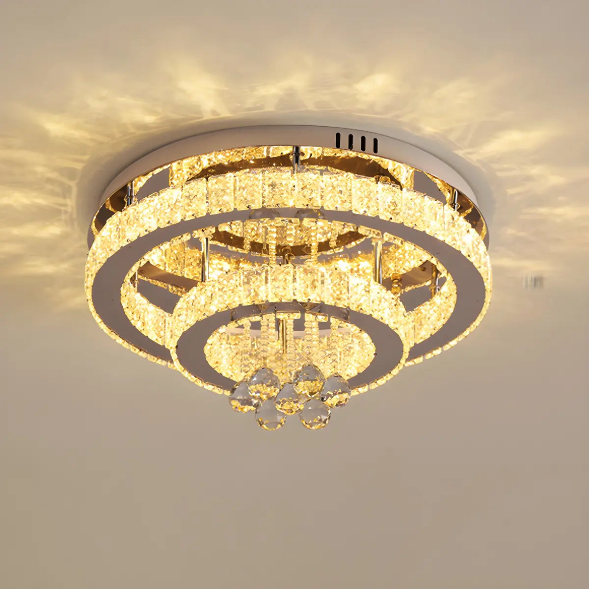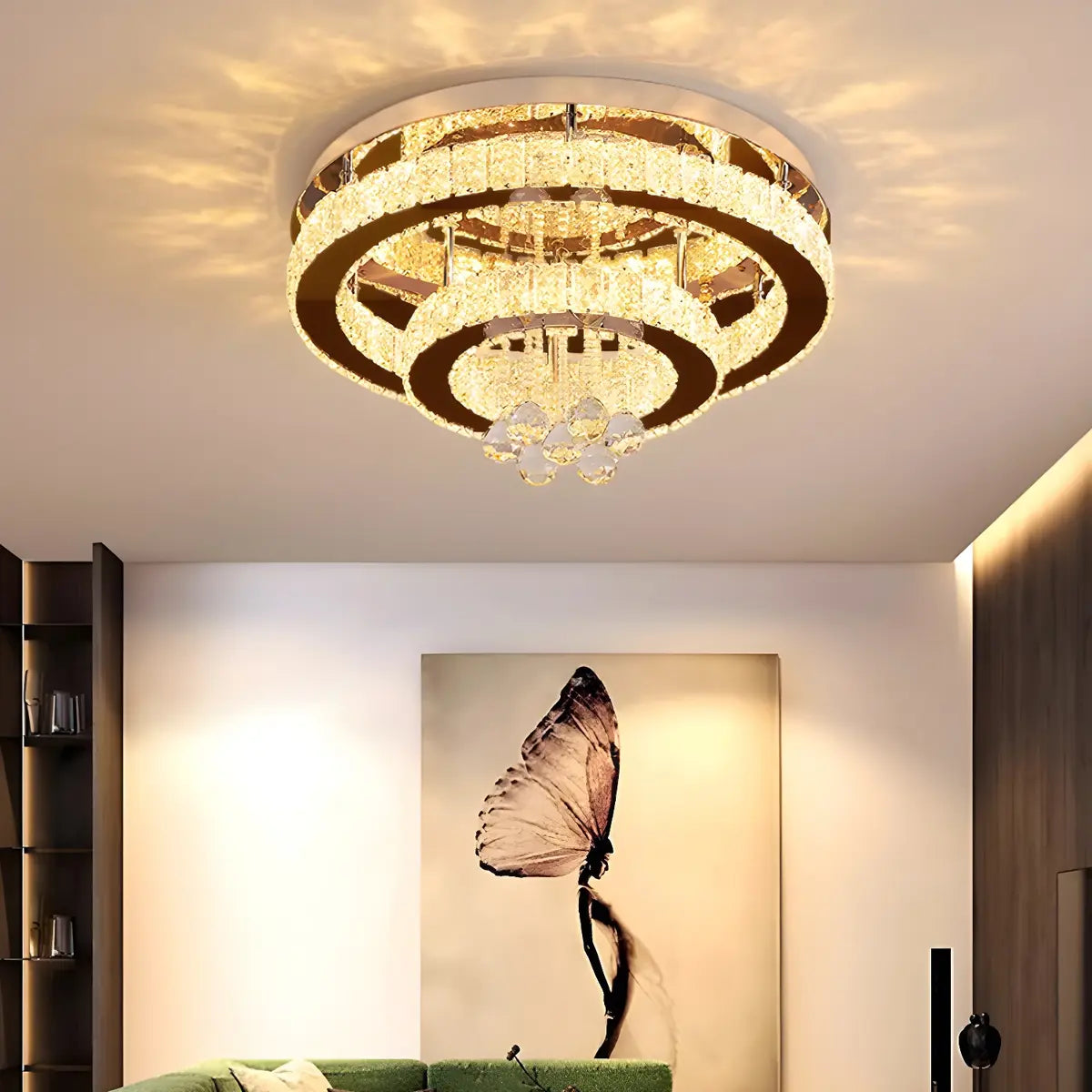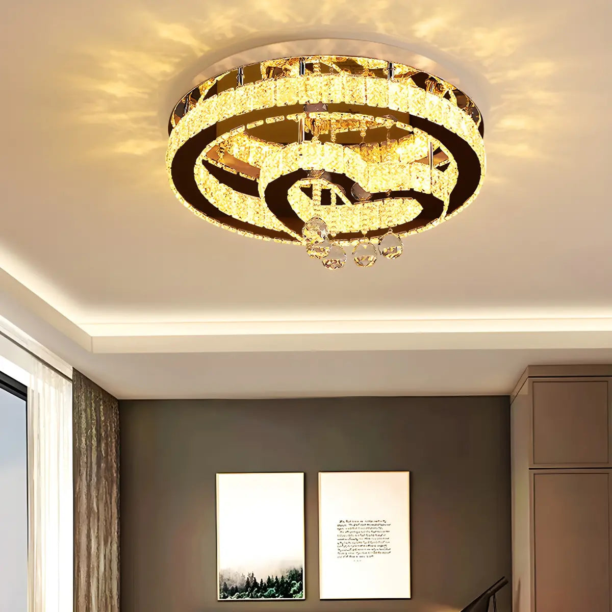 This luxurious multi-layer round crystal semi-recessed ceiling lamp combines modern fashion design with exquisite craftsmanship details, exuding unparalleled luxury.
