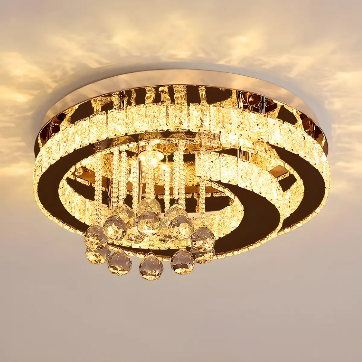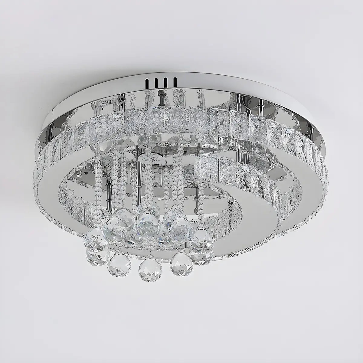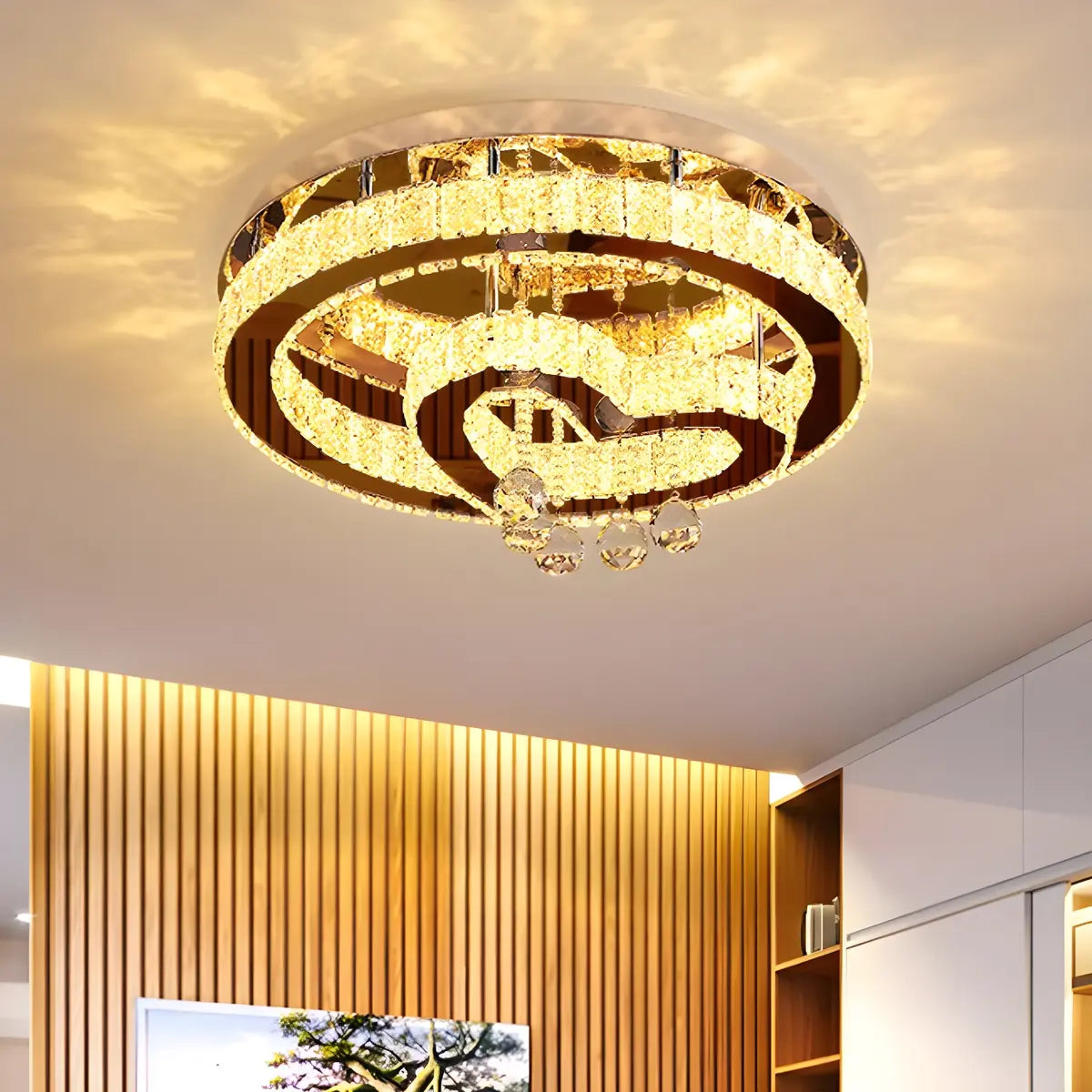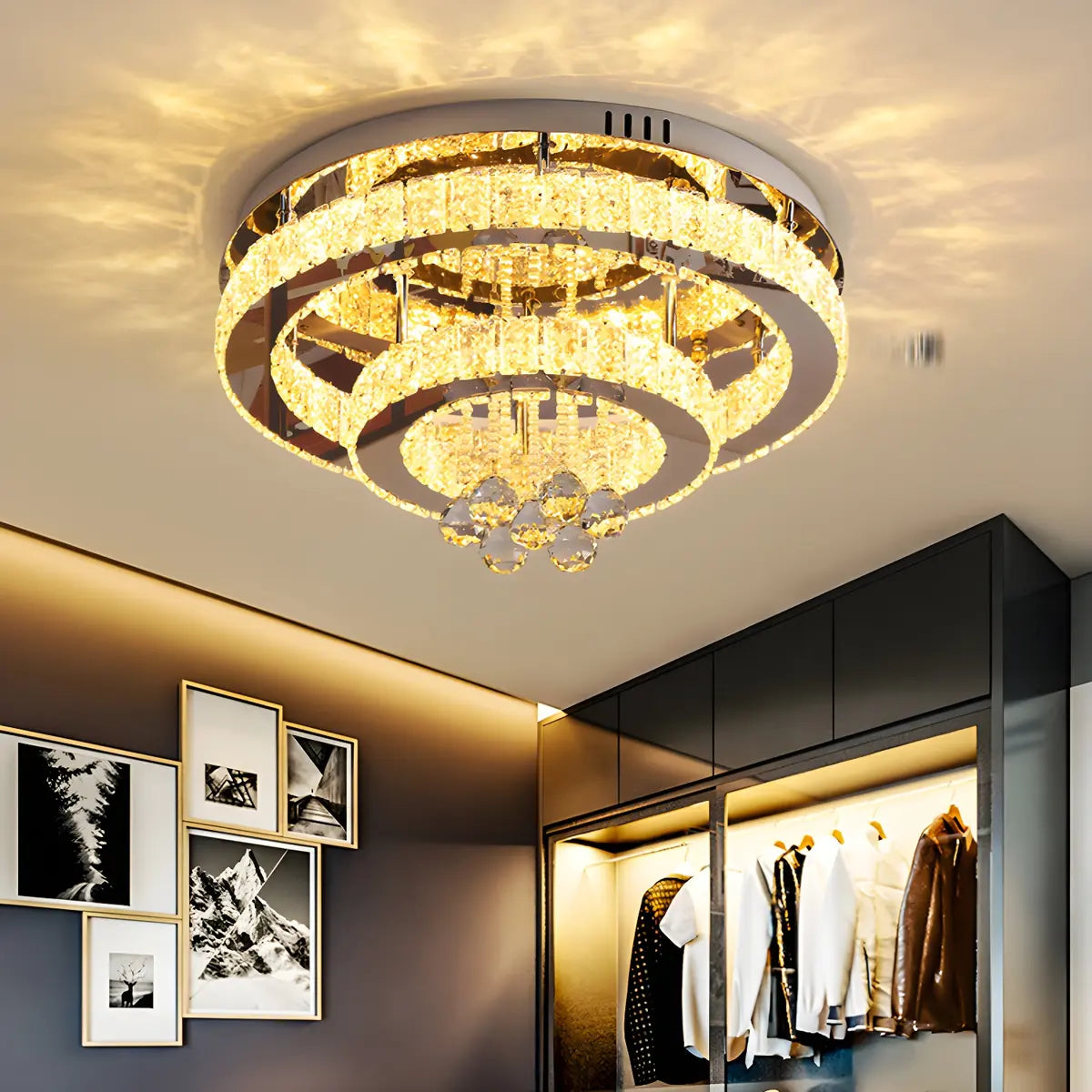 This luxurious multi-layer round crystal semi-recessed ceiling lamp combines modern fashion design with exquisite craftsmanship details, exuding unparalleled luxury.