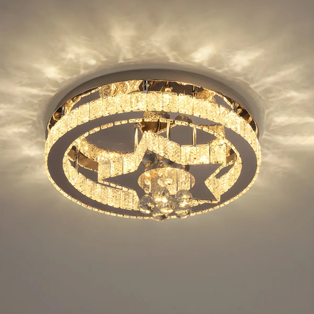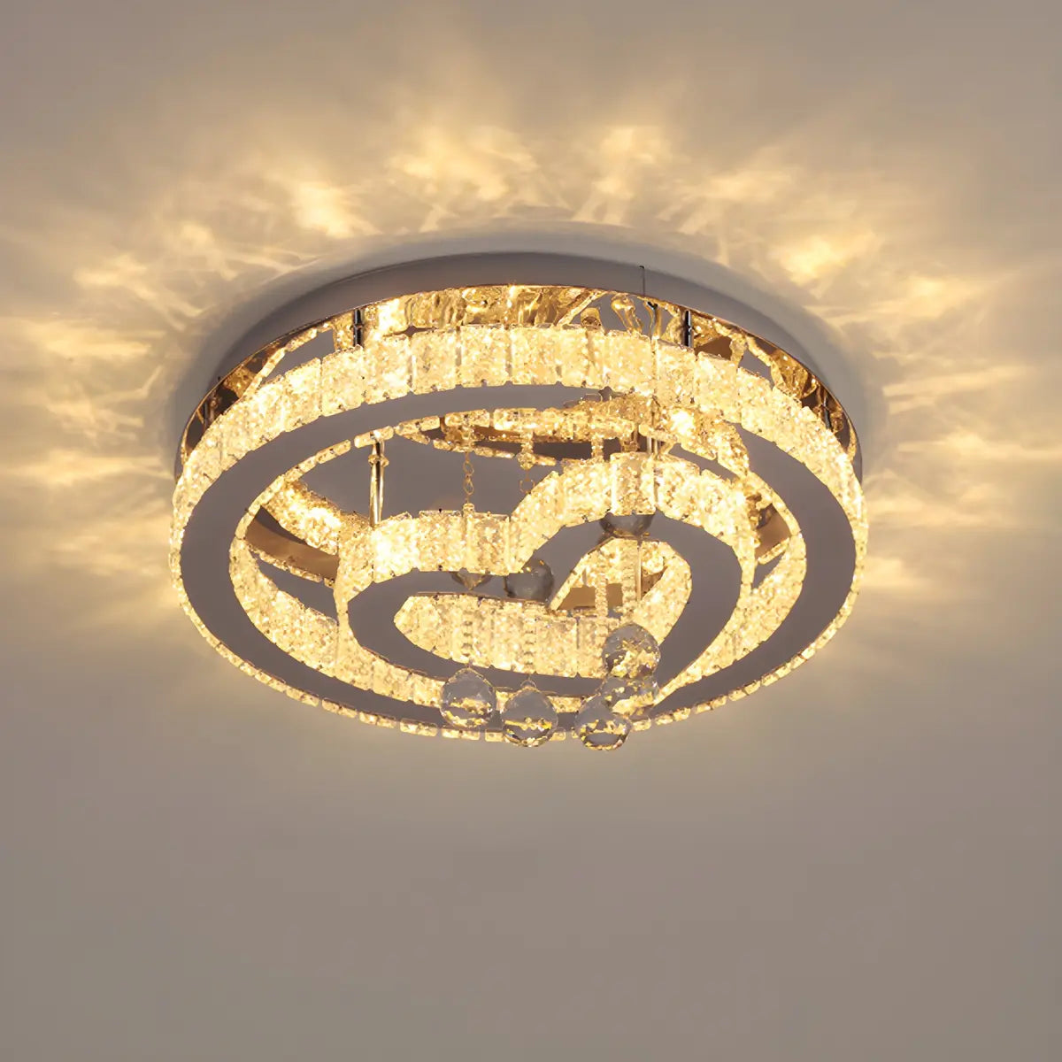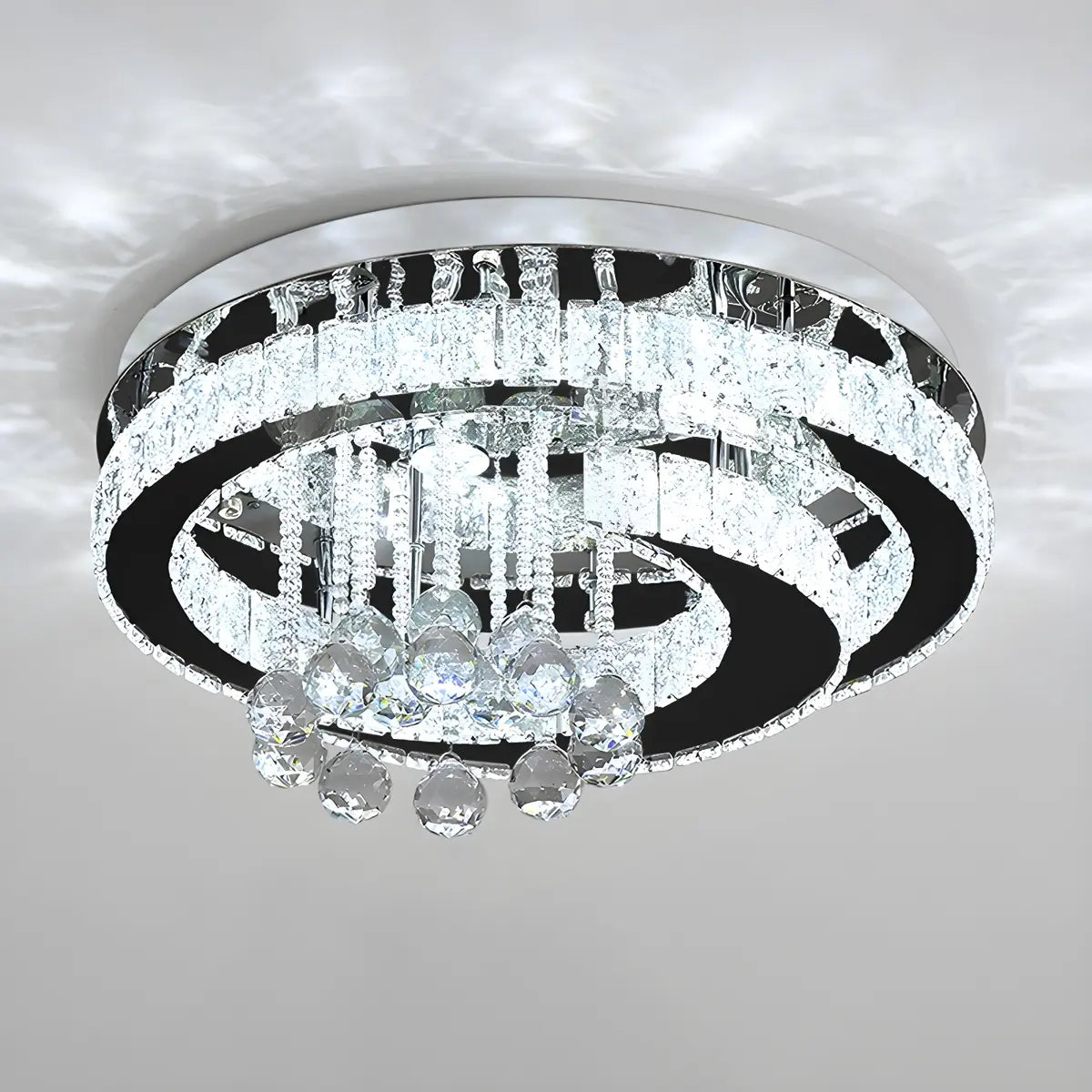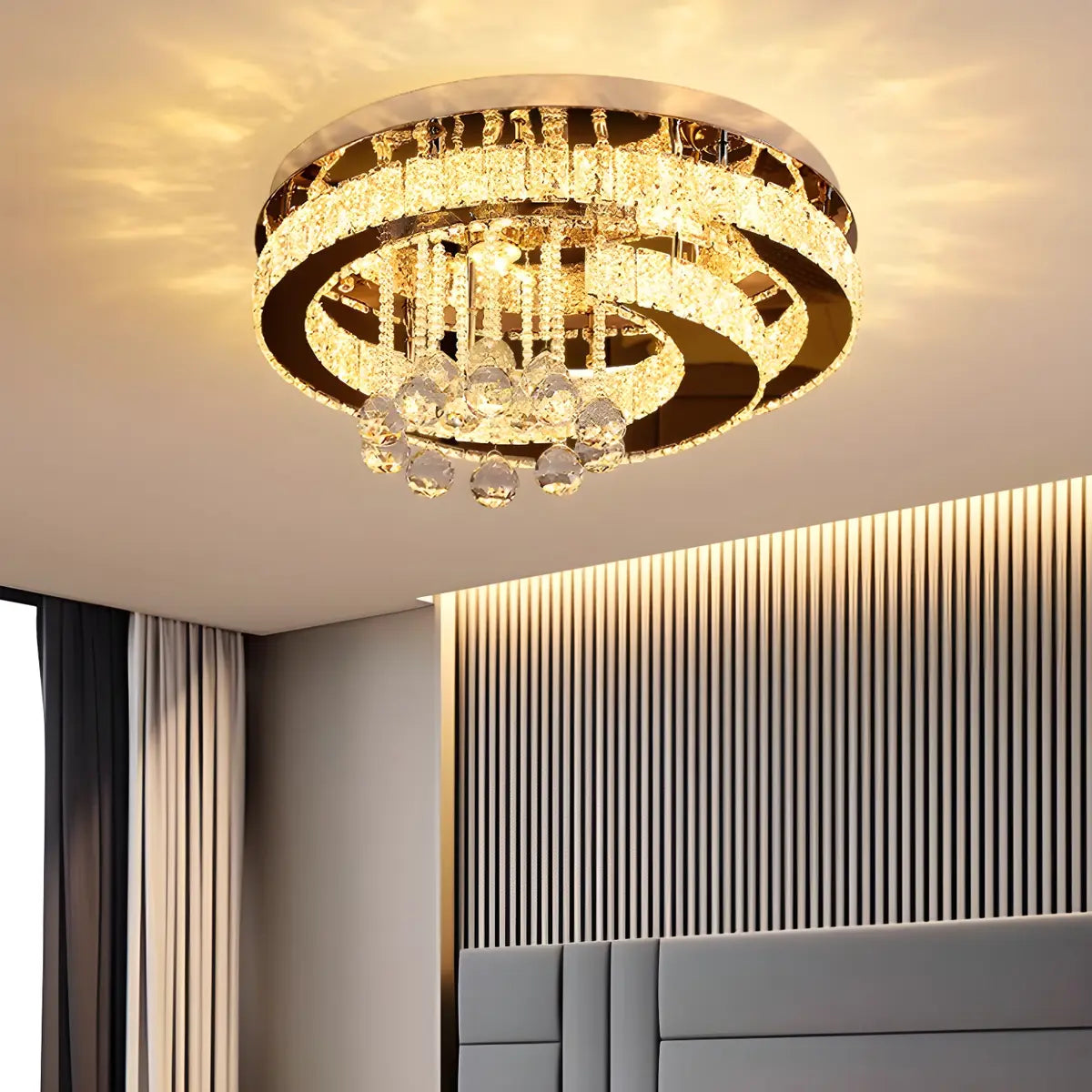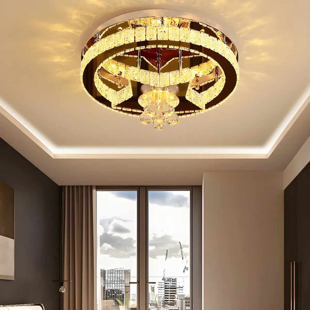 This luxurious multi-layer round crystal semi-recessed ceiling lamp combines modern fashion design with exquisite craftsmanship details, exuding unparalleled luxury.