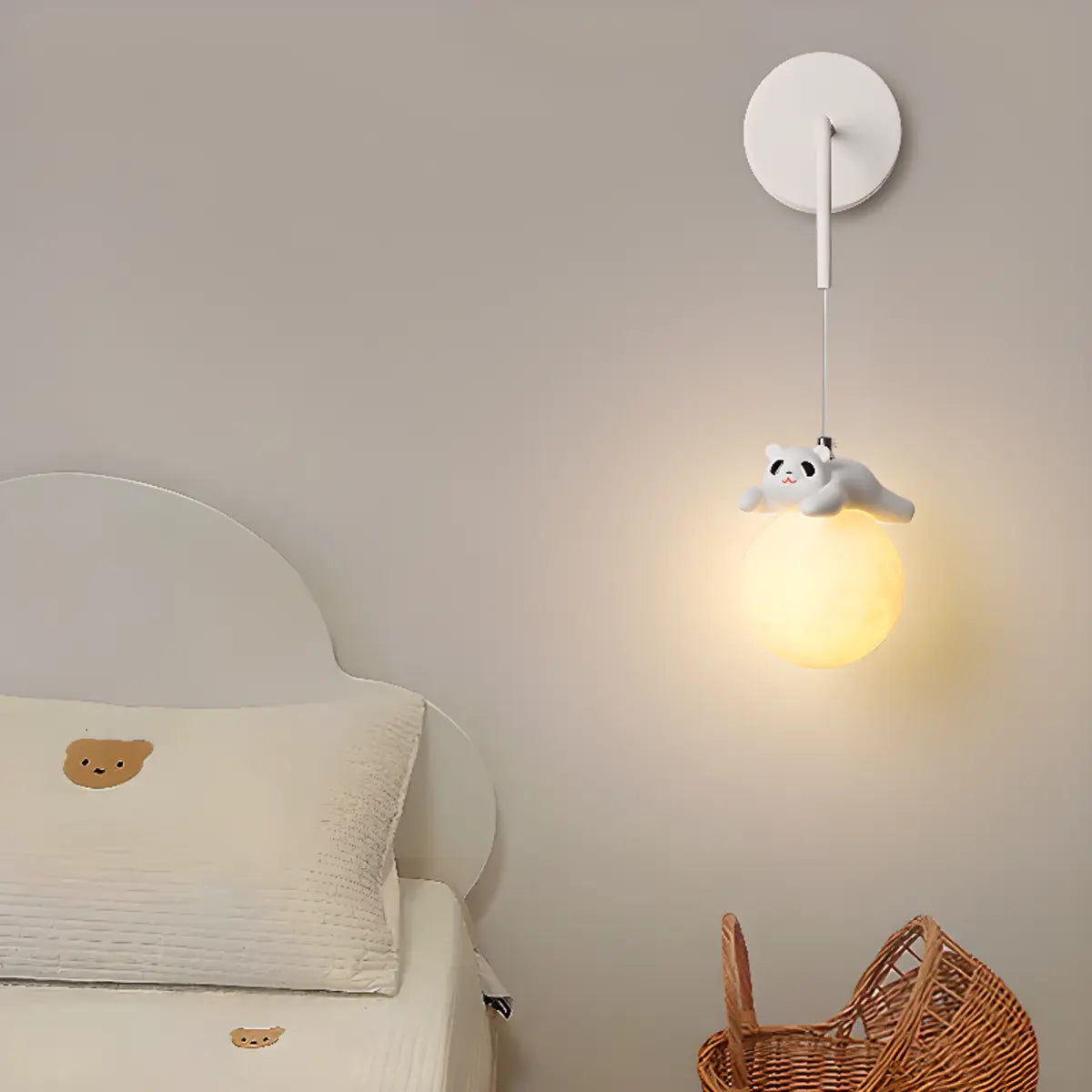This wall lamp is inspired by the cute panda image and is designed specifically for children's rooms to add a fun and lively atmosphere to the room.