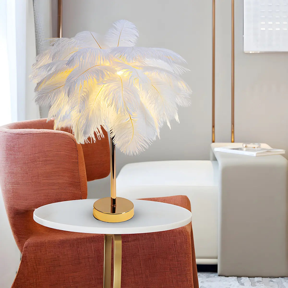 With its unique feather lampshade and modern design, this table lamp will give your home an artistic touch and become a decorative highlight in the space.