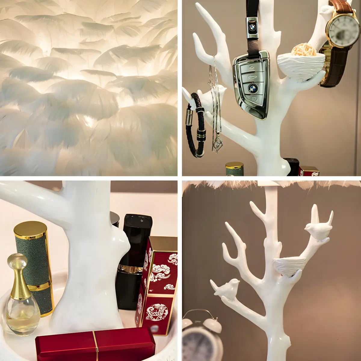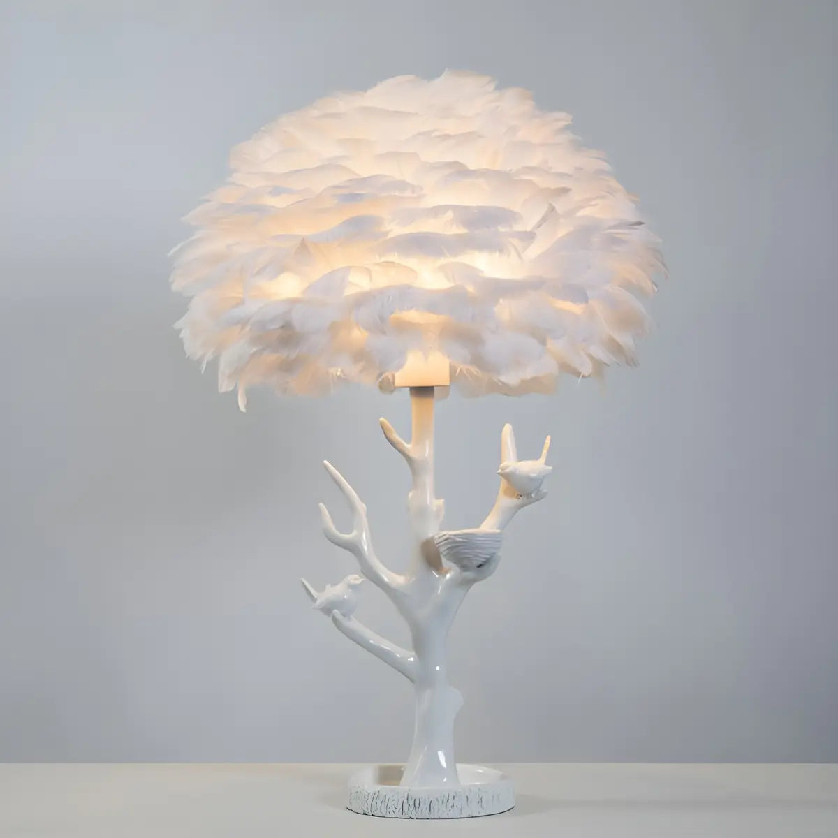 This table lamp is presented in a modern design style, combined with a white feather lampshade. The overall shape is like a branch, full of artistic atmosphere.