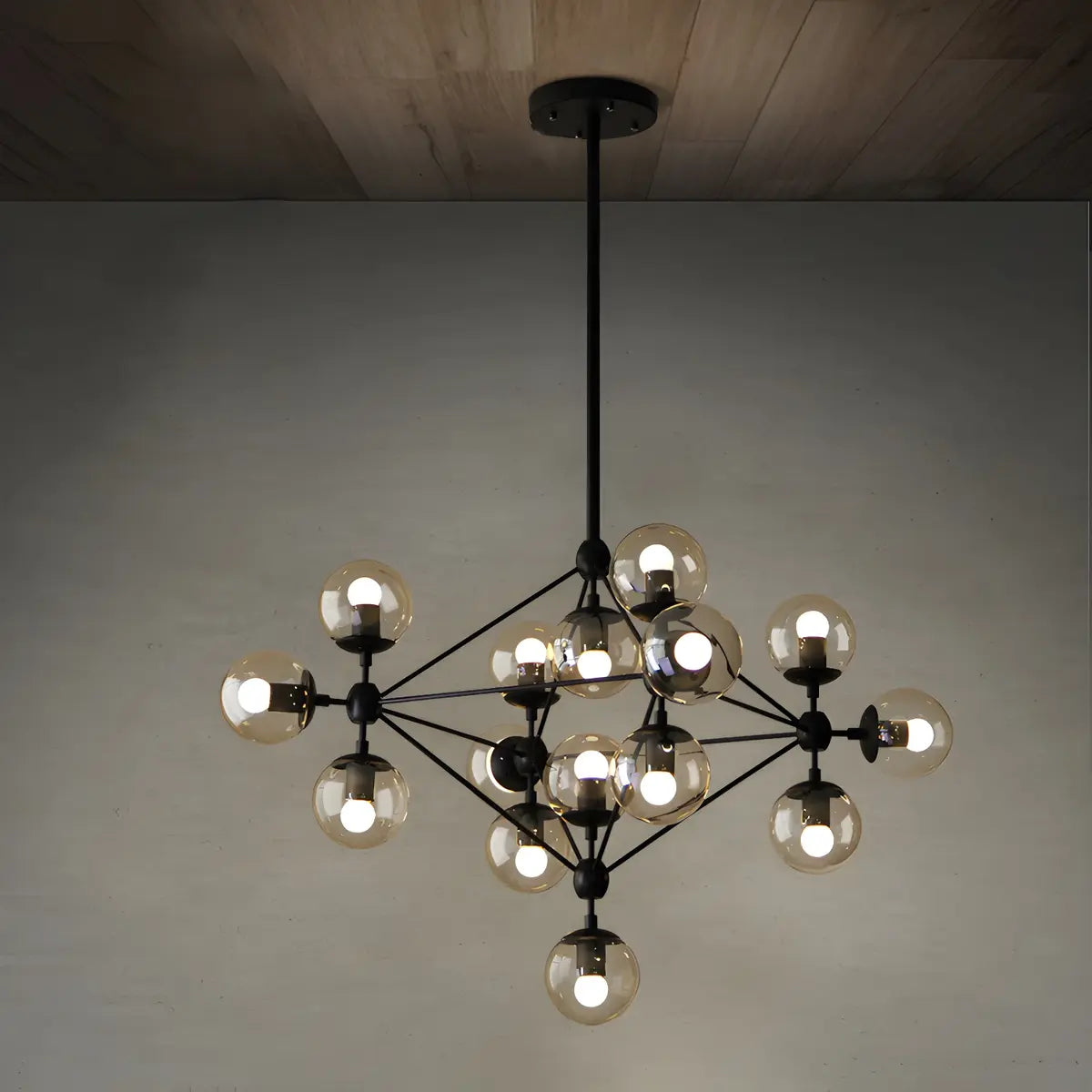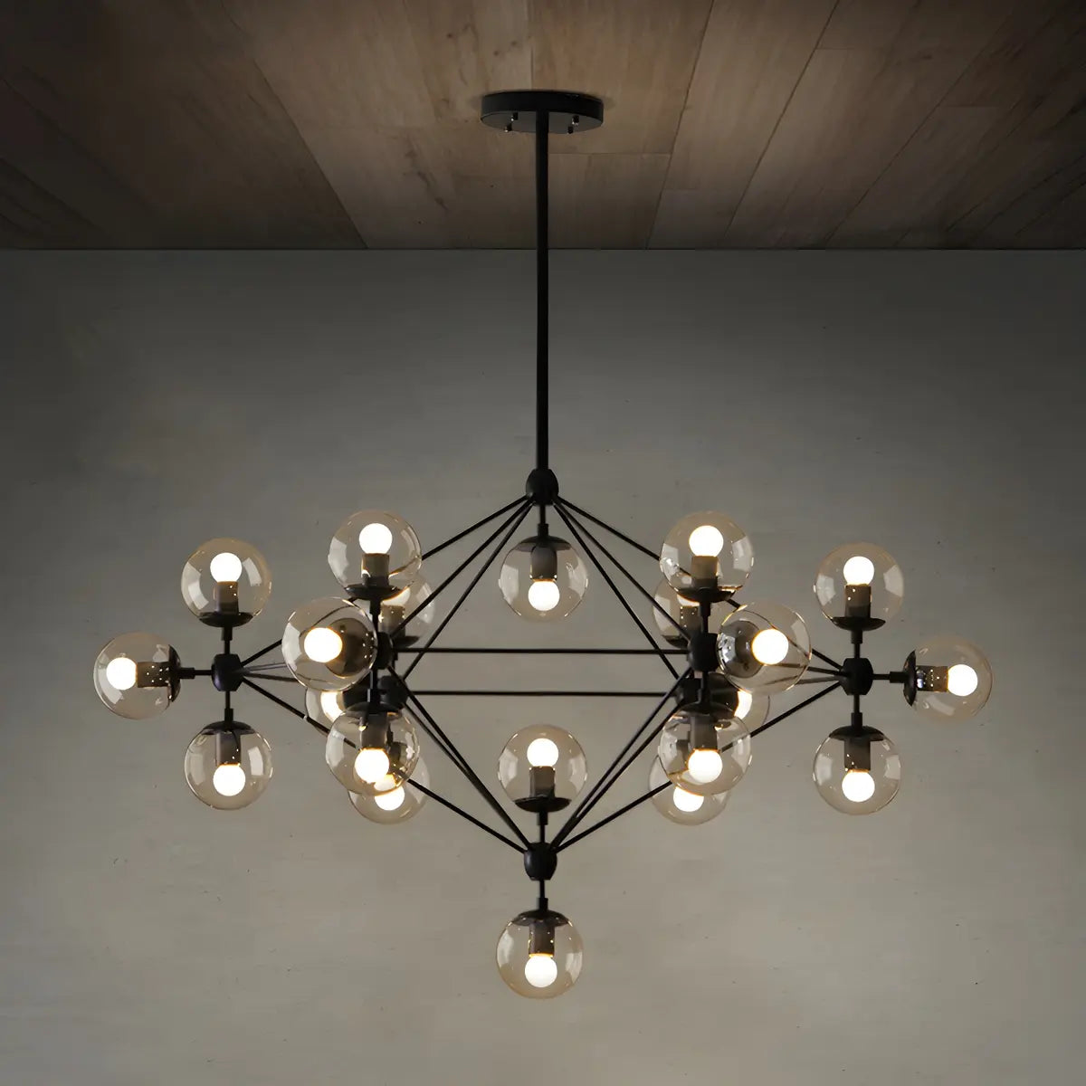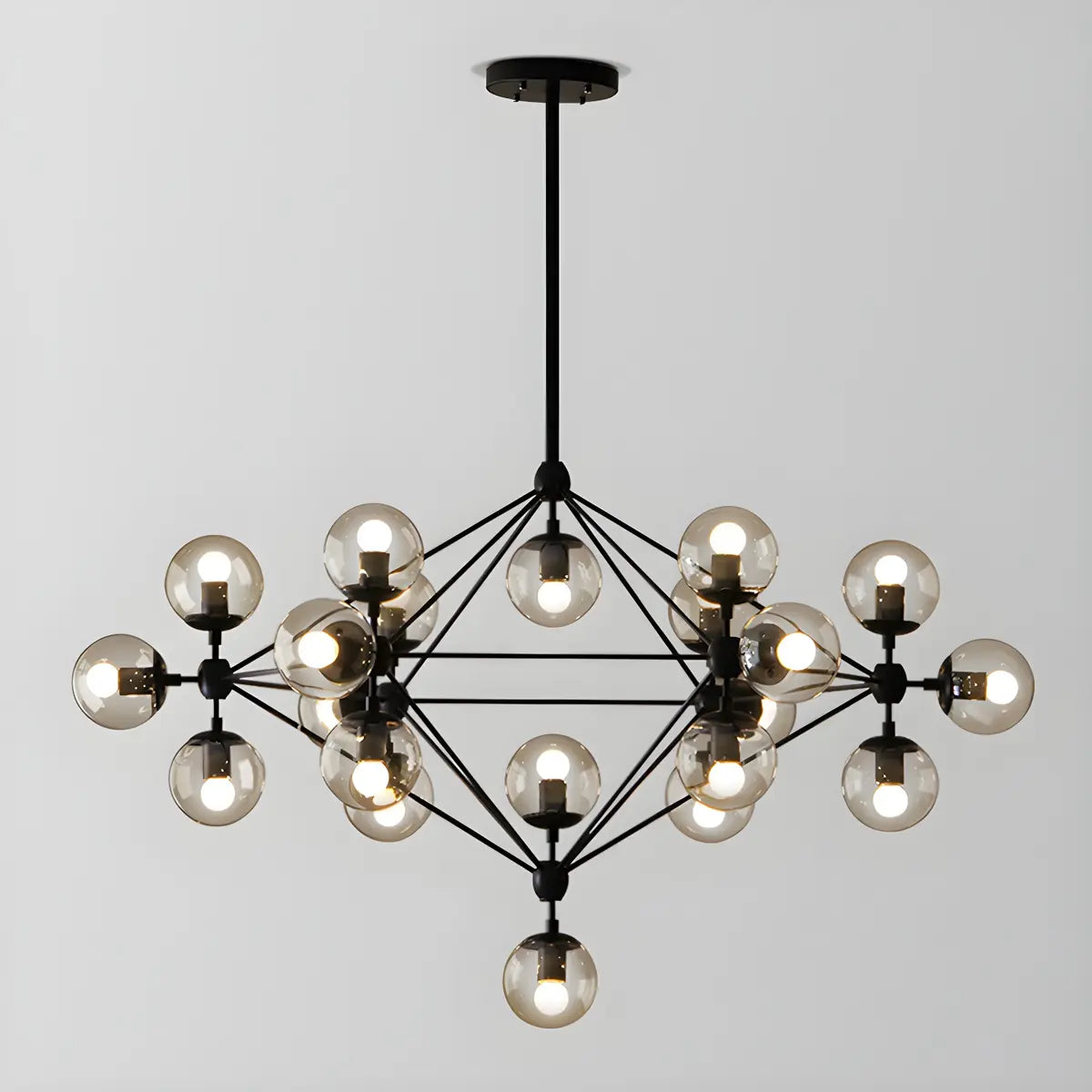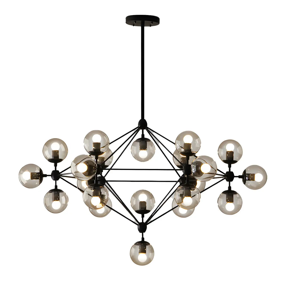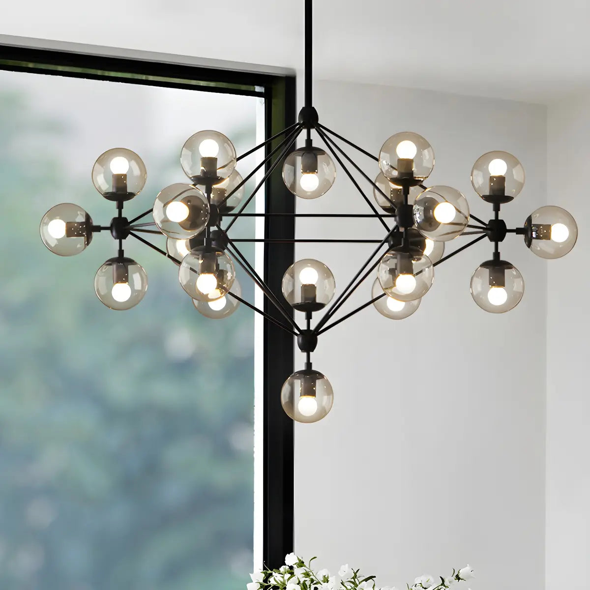 Combining elegance with functionality, this modern geometric glass chandelier adds visual impact to every space with its unique spherical contemporary design.