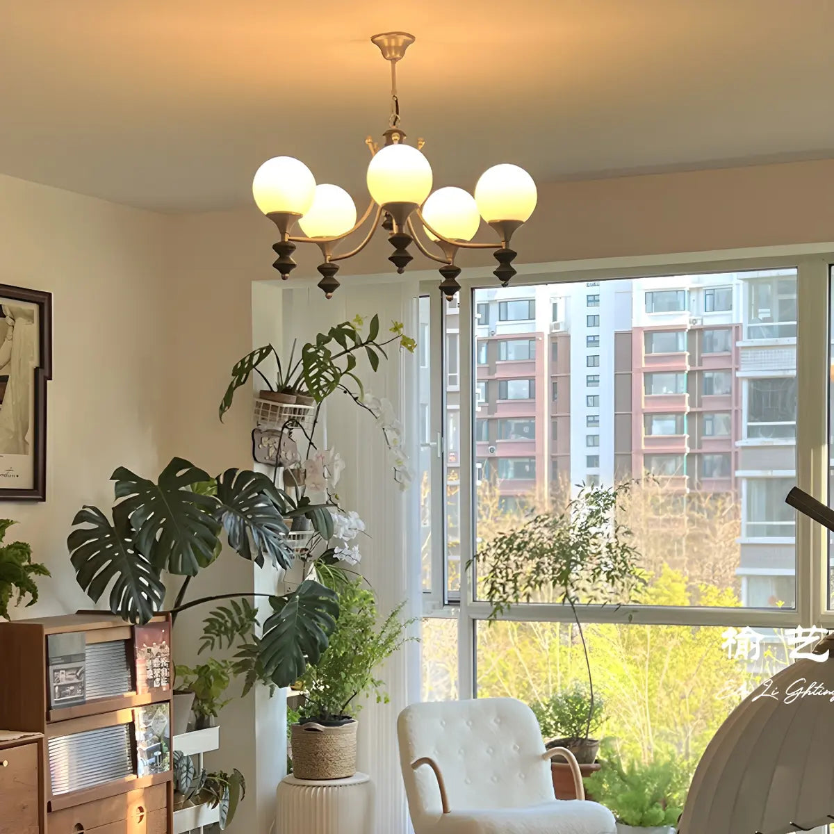 This modern spherical chandelier adds style and warmth to any living room with its elegant metal design. It will blend in perfectly with both contemporary homes and mid-century style decor.