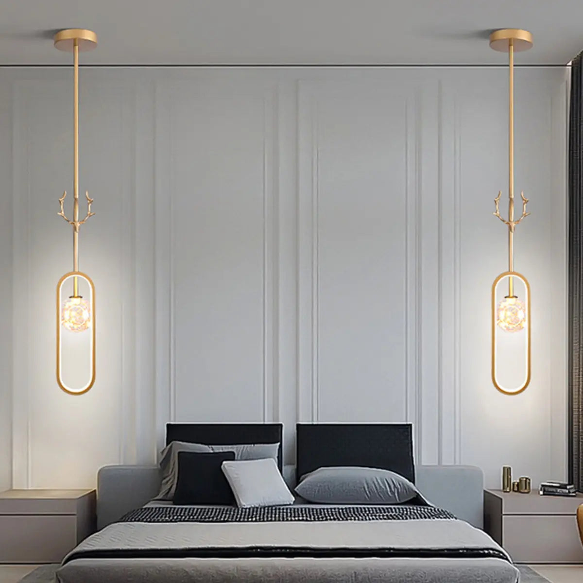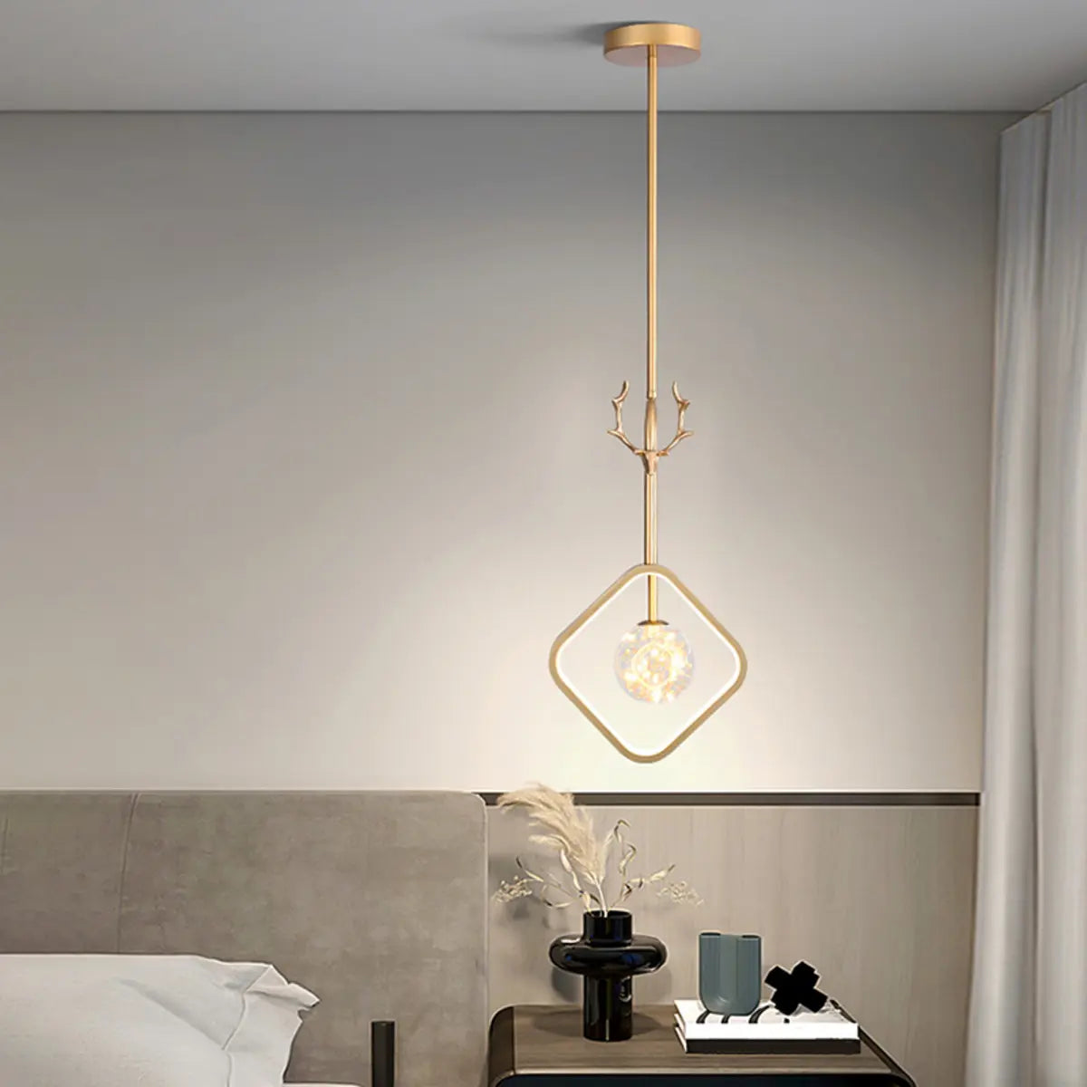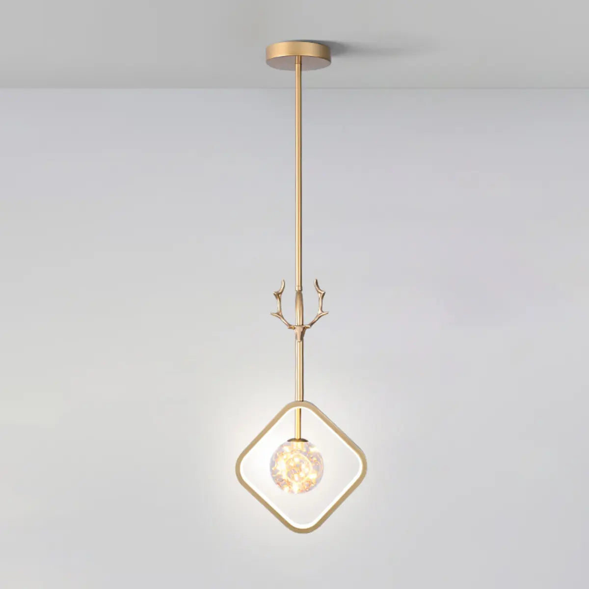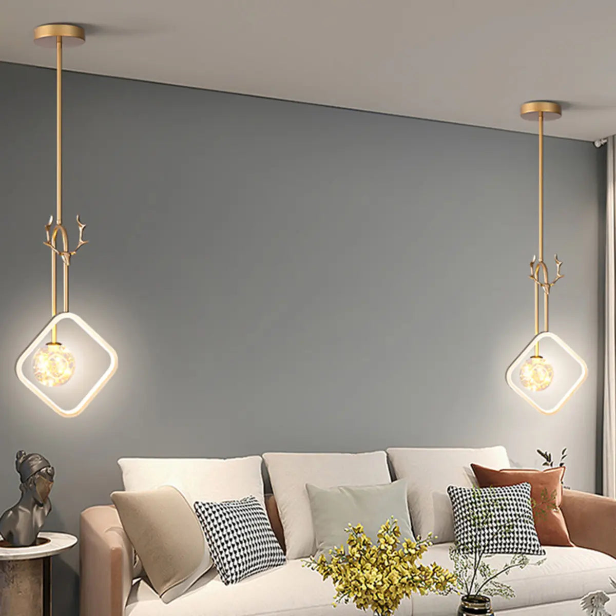 ZOWALA - Modern Gold 2-Light Antler Square Globe Pendant Light