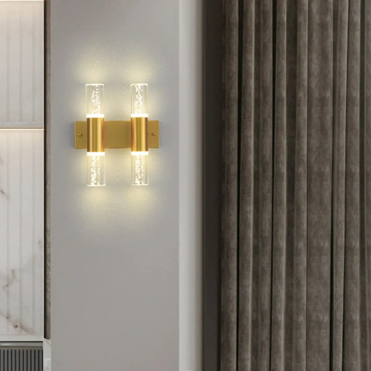 This modern wall lamp combines elegant gold and a unique bubble glass design, which is ideal for home decoration. Whether it is a living room or a bedroom, it can create a sophisticated atmosphere.