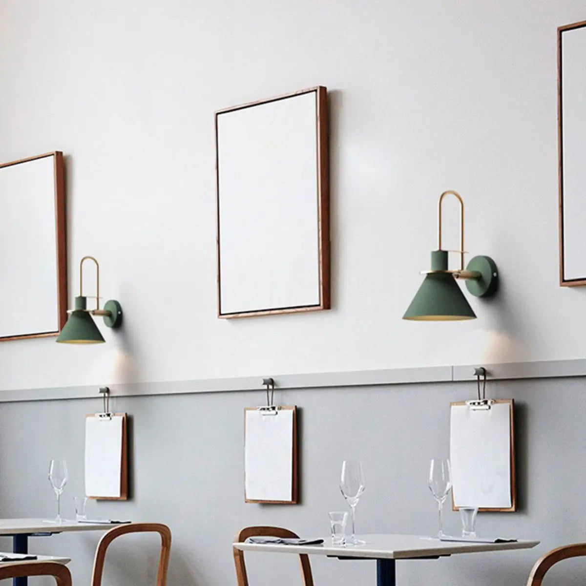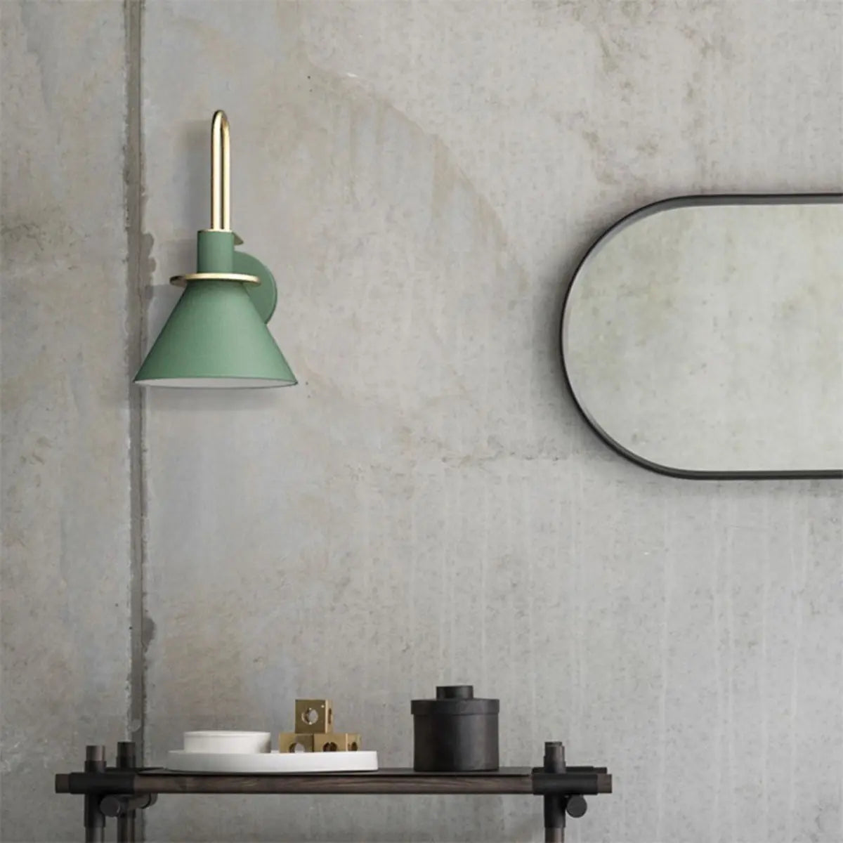This modern conical wall lamp combines elegant green with high-quality electroplated brass, perfect for creating a stylish atmosphere in your living room or bedroom.