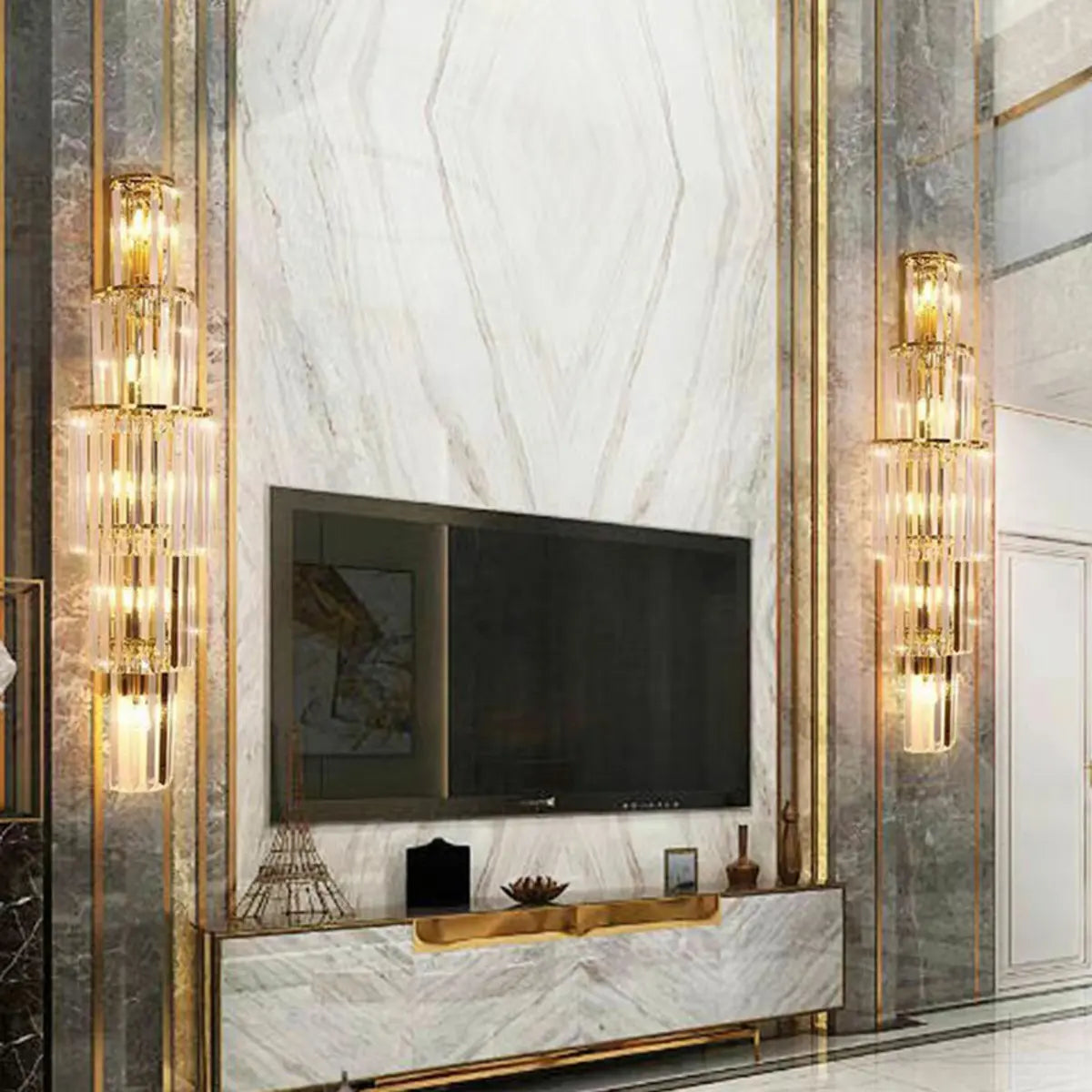 ZOWALA - Modern Gold Clear Crystal Tiered Wall Sconce