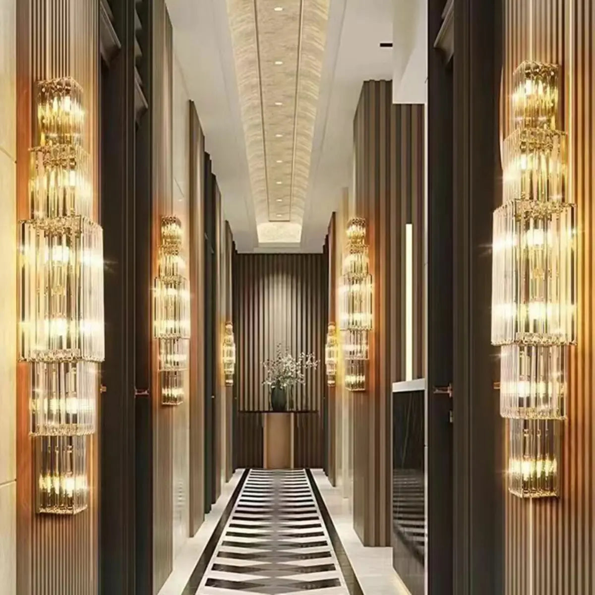 A perfect combination of modern design and luxurious texture, this wall lamp features elegant layered crystals paired with a gold metal frame, adding glamour to any interior.