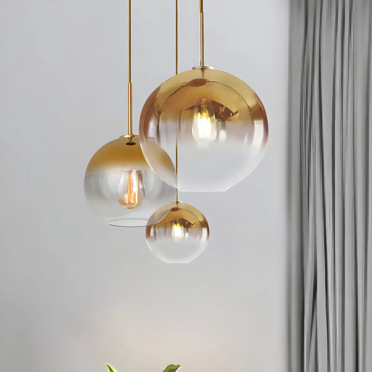 This chandelier is presented in a modern and simple design style. The elegant gold and transparent glass spherical lampshade are perfectly combined, showing the ultimate fashion beauty. Whether it is day or night, this chandelier can become the visual center in your kitchen, enhance the overall decorative taste, and create a warm and luxurious atmosphere.