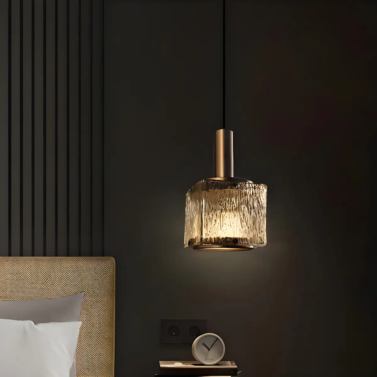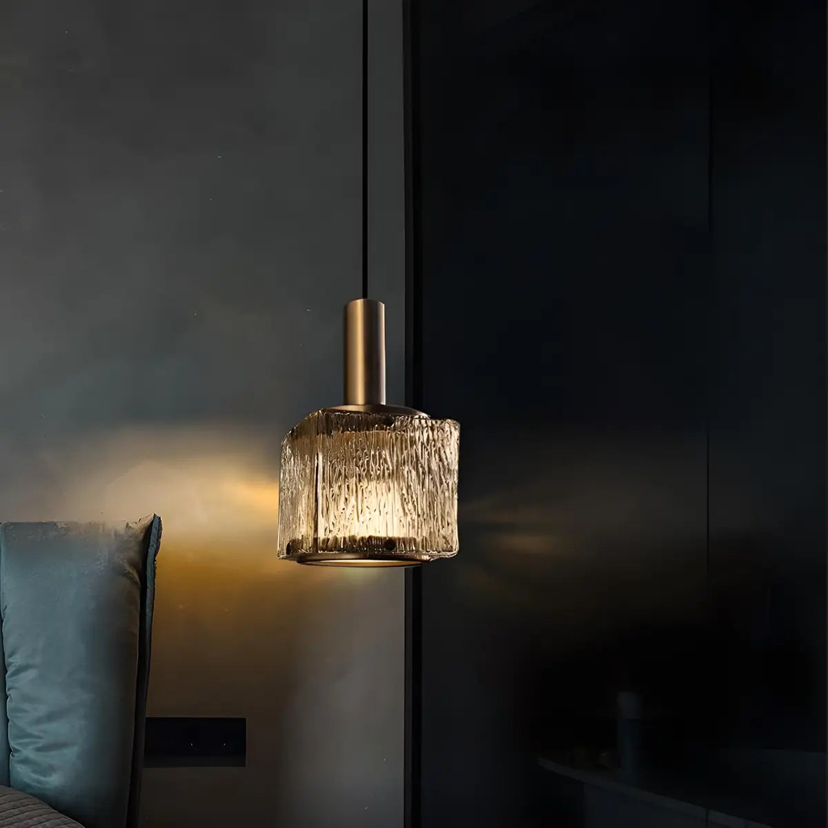 This pendant lamp cleverly combines modern style with classic elements. The square crystal lampshade emits a unique light against the golden background, enhancing the artistic atmosphere of the space. Whether it is installed above the kitchen island or used as a bedside lamp, it can add a touch of nobility and elegance to the interior.