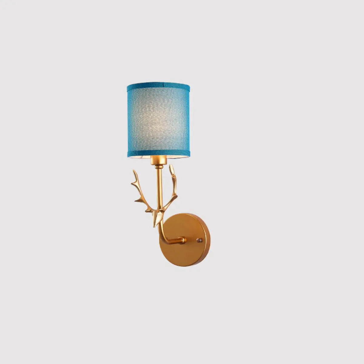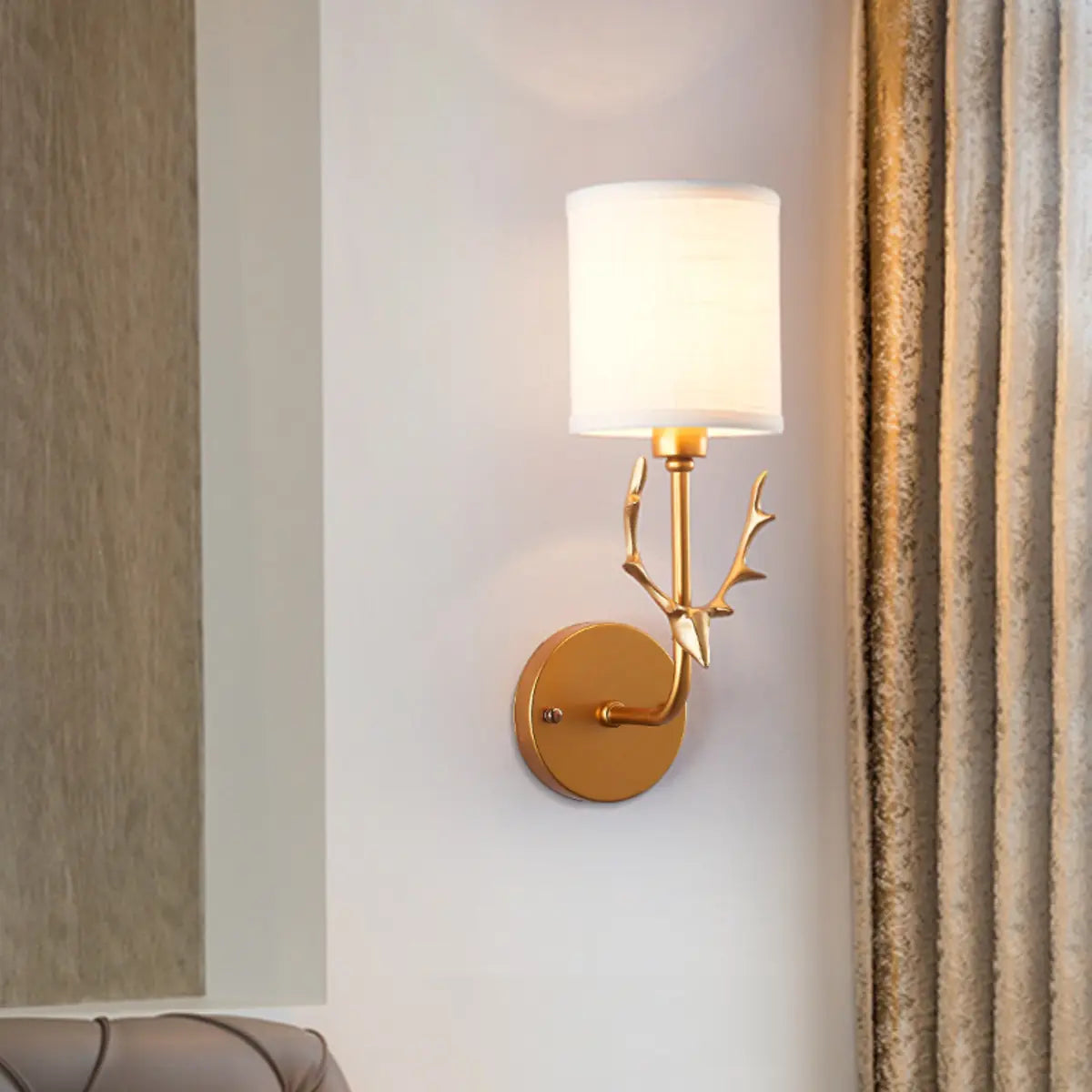 ZOWALA - Modern Gold Fabric White Cylinder Antler Wall Light