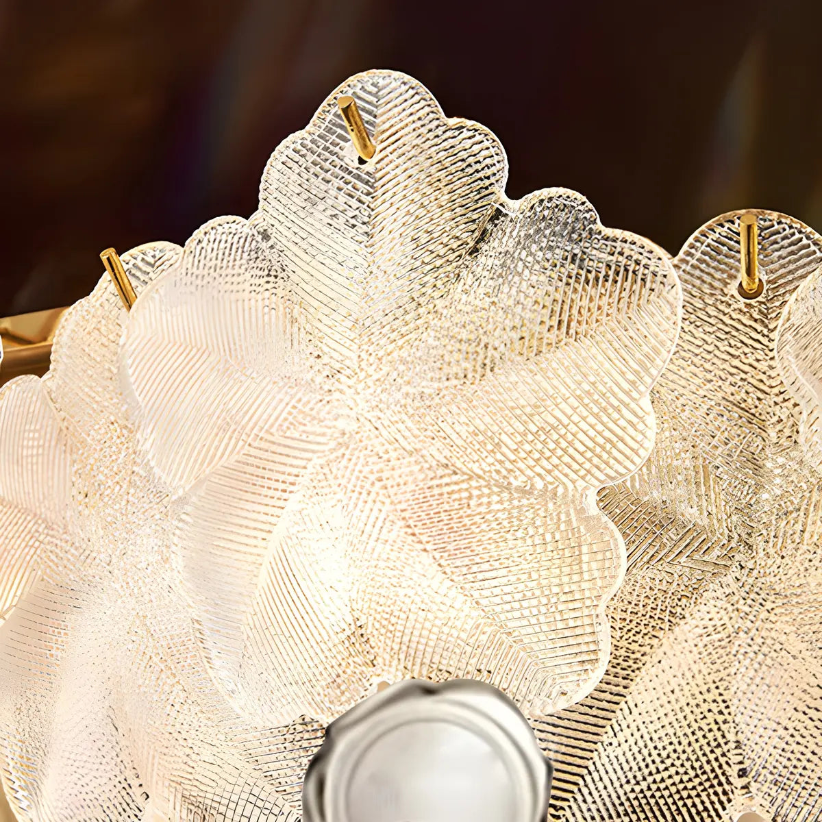 This modern geometric floral chandelier adds luxury to your space with its exquisite glass petal design and unique light and shadow effect. The combination of golden metal and transparent glass shows a perfect balance of fashion and elegance.