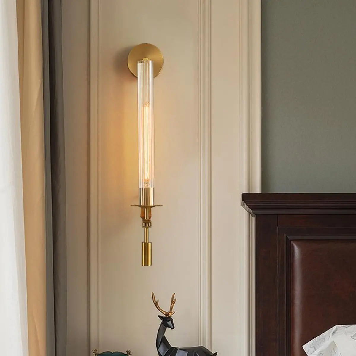 This modern gold vanity lamp, with its unique columnar design and premium metal material, instantly enhances the elegance of any space. The warm lighting effect created by the gold lampshade is perfect for home scenes such as bedrooms, adding a touch of luxury and warmth to your life.