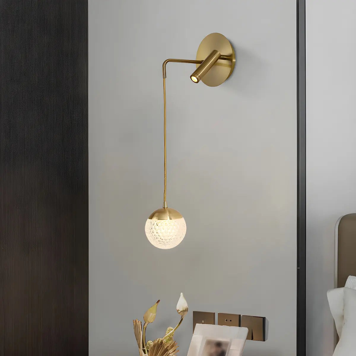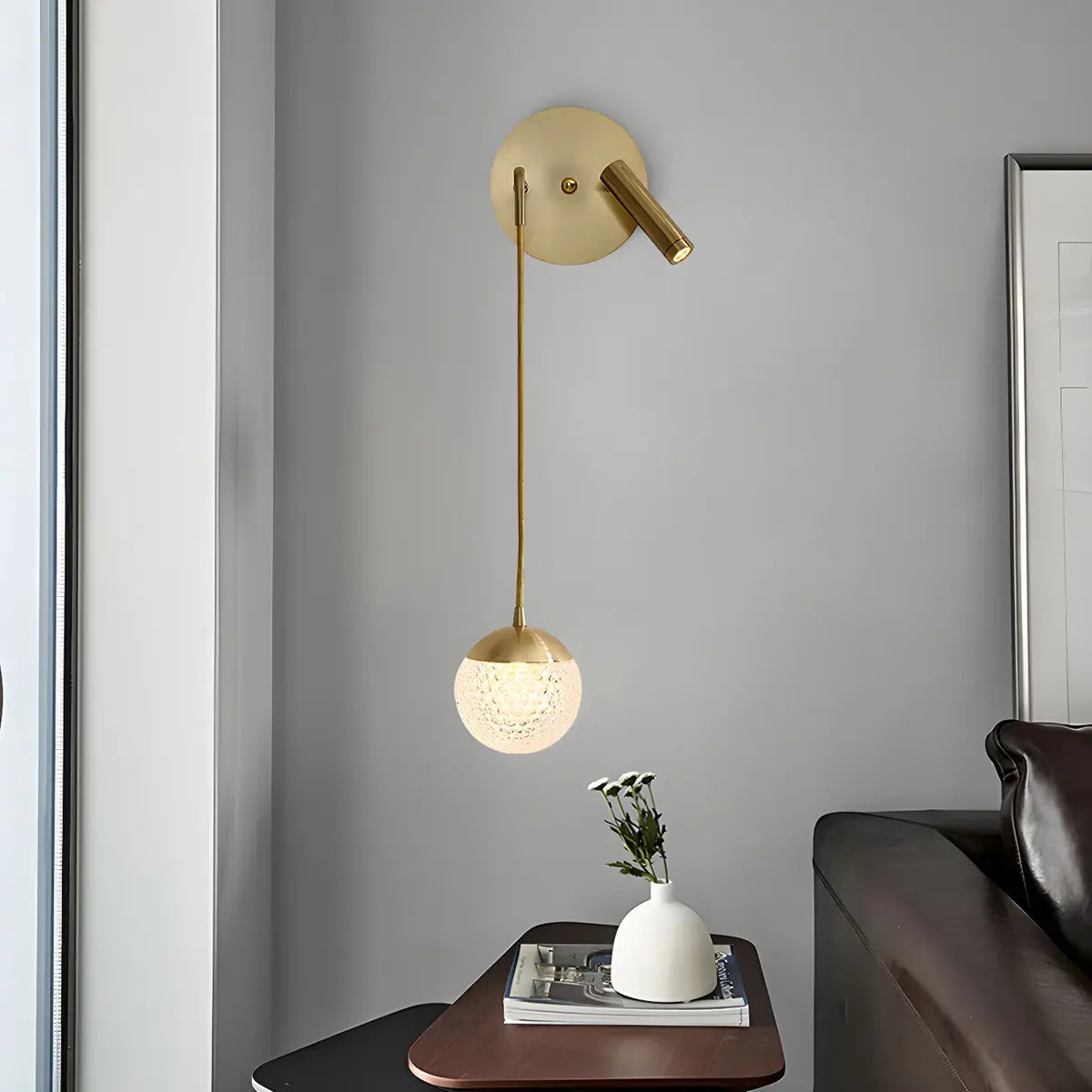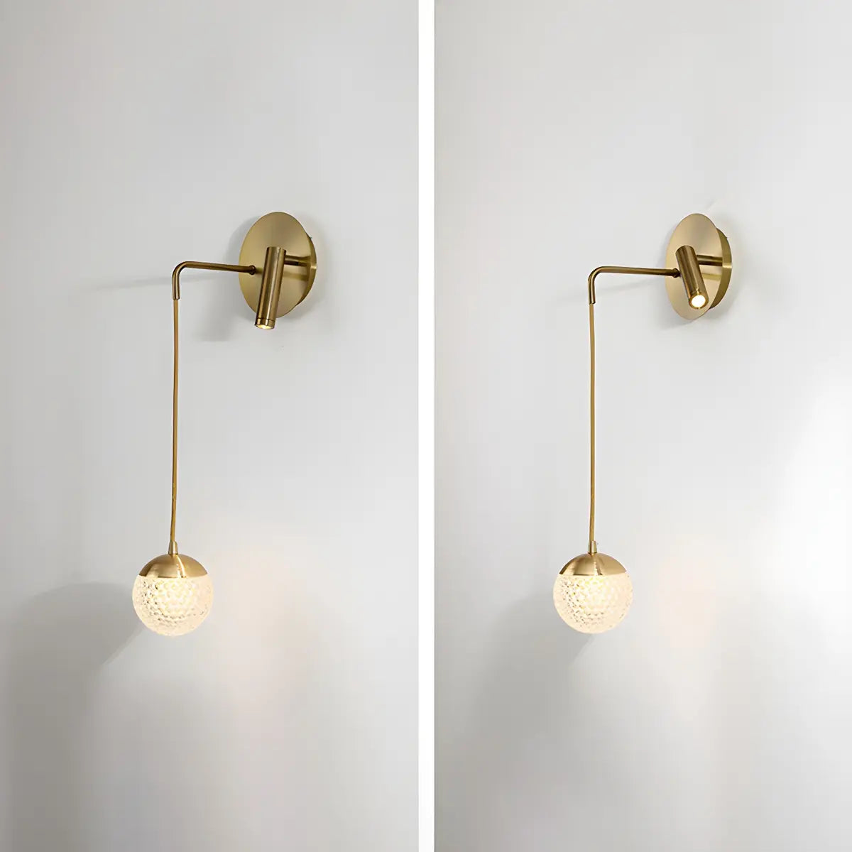 This modern wall lamp in gold-tone metal combines style and functionality.