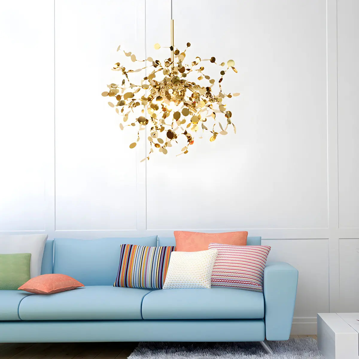 This chandelier adopts an elegant metal disc design, like a light work of art, hanging indoors, adding a touch of golden splendor to your home. Its unique shape can not only perfectly integrate into the decoration of modern minimalist style, but also add a sense of luxury and artistic atmosphere to the whole space.