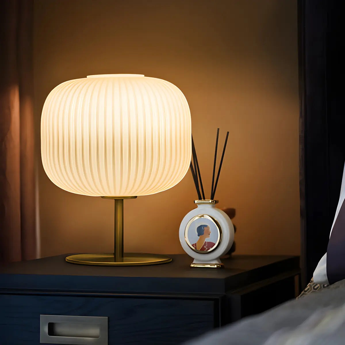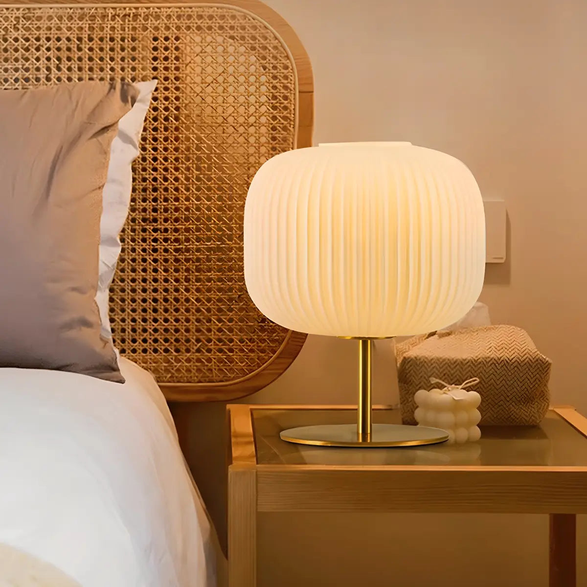 ZOWALA - Modern Gold Metal White Drum Glass Table Light
