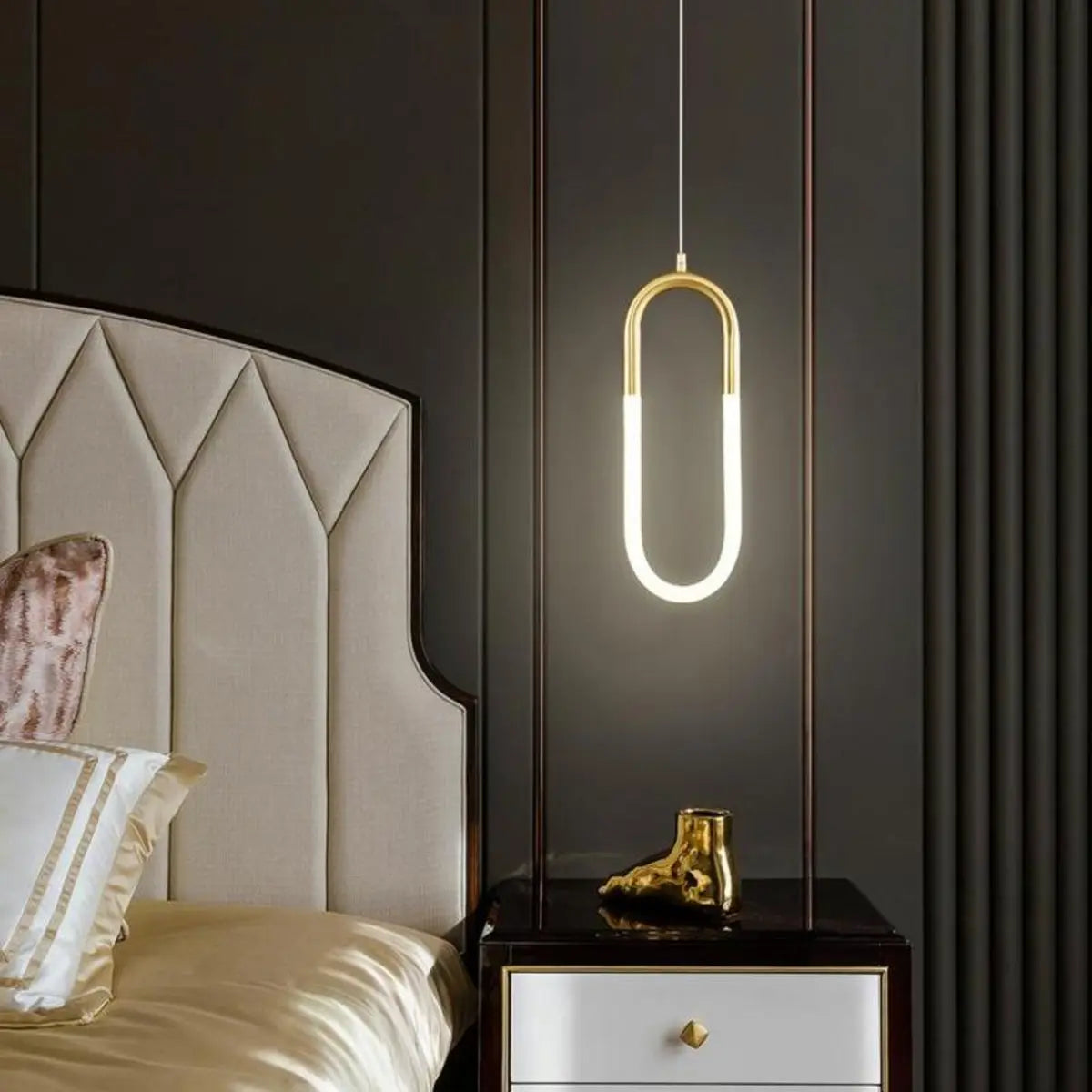 This ZOWALA chandelier stands out with its elegant golden oval design. It uses high-quality metal materials to show the perfect combination of modern simplicity and luxury. When lit, the transparent plexiglass lampshade emits soft natural light, adding a warm and artistic feeling to the kitchen. Its linear structure is perfect for hanging above the kitchen island, becoming the visual focus of the space, combining practicality and decoration.