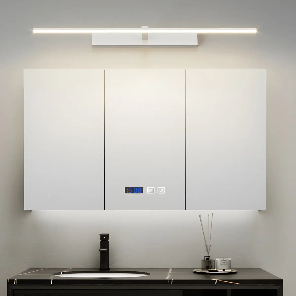 - The wall lamp is installed via a hard-wired power supply to ensure safety and stability, and is suitable for installation in scenes such as bathrooms, restrooms, or bedrooms.