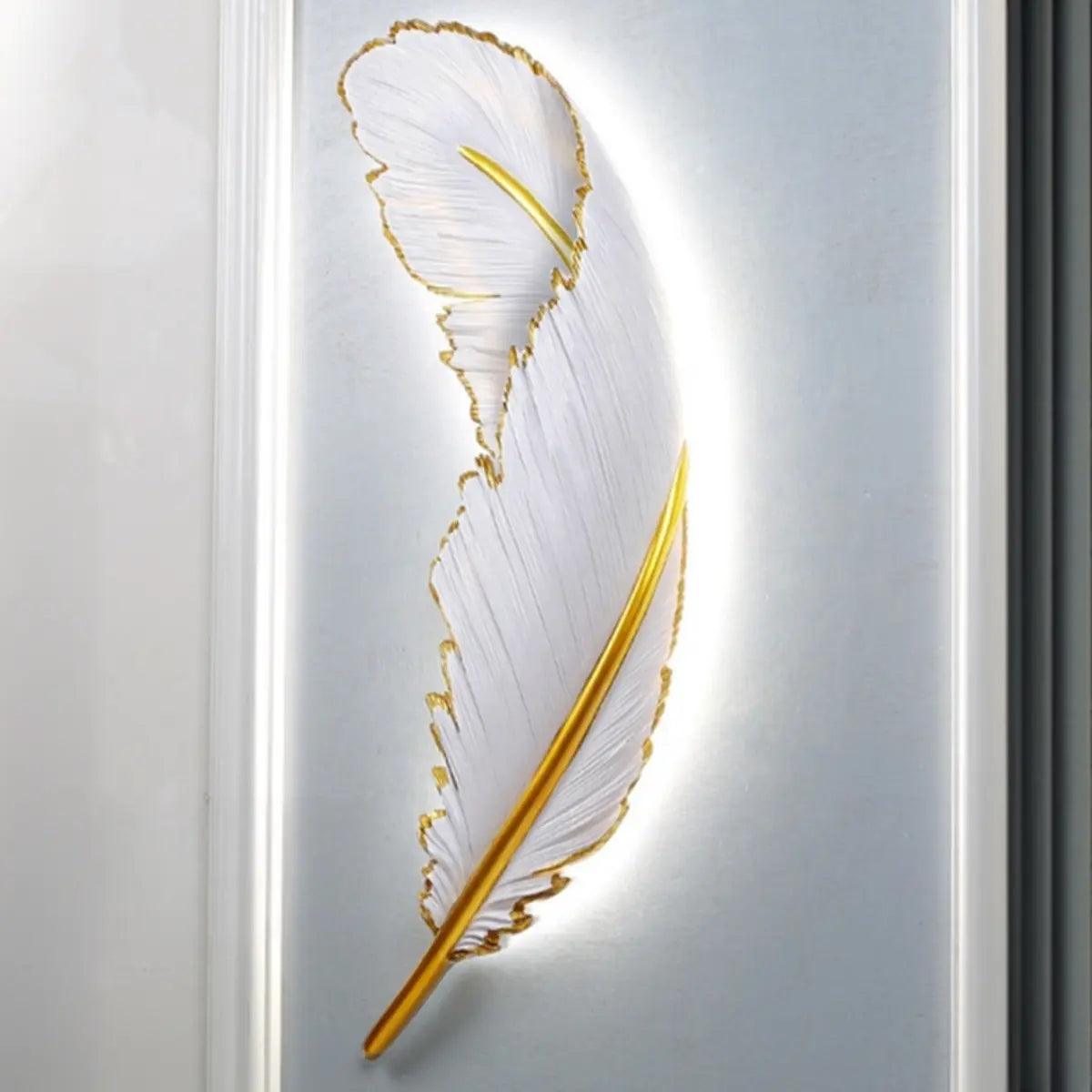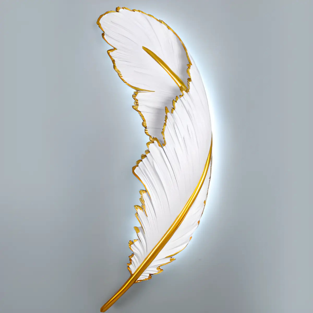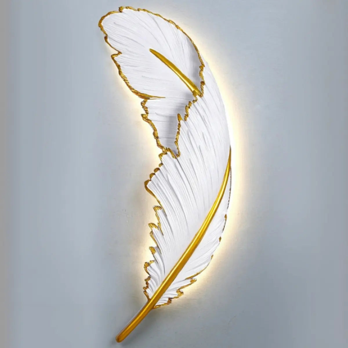 Featuring an elegant gold and white feather design, this wall sconce will add a touch of modern elegance to your interior. Its large size ensures it becomes the central focal point of your wall.