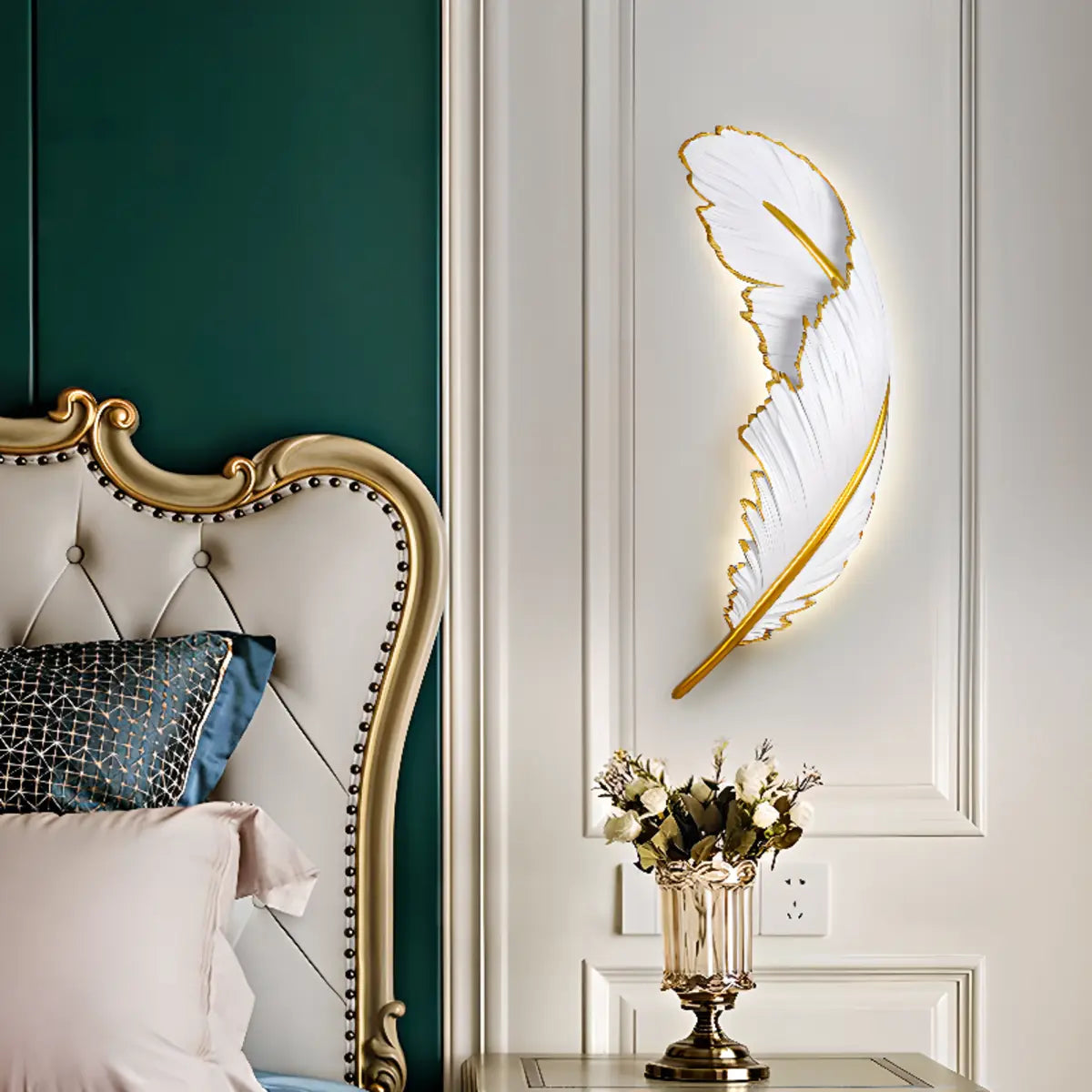 ZOWALA - Modern Gold White Resin Feather Wall Sconce