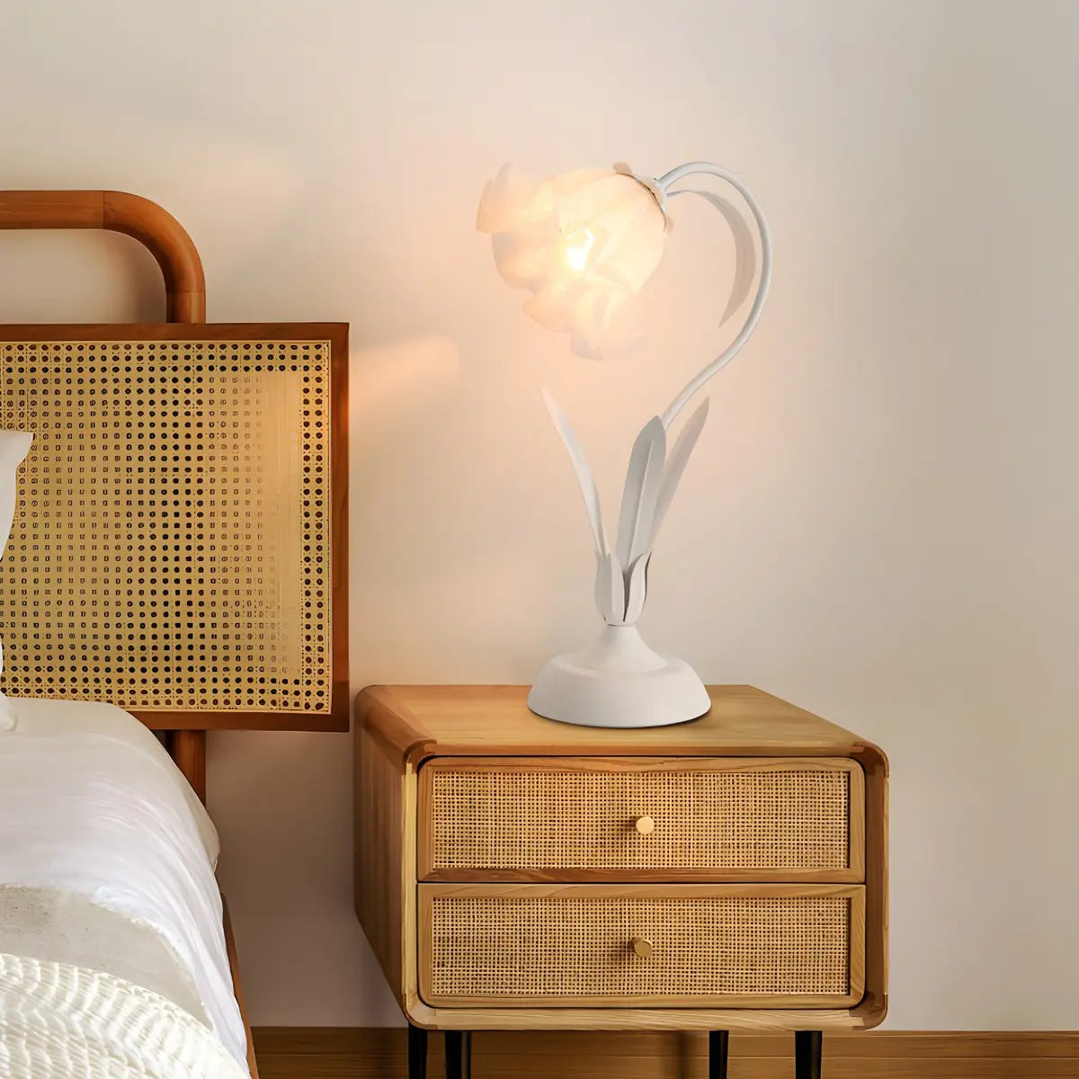 This modern green glass table lamp will give your space a new look with its unique tulip flower-shaped design. The perfect combination of metal and glass not only provides a stable structure, but also gives the lamp an elegant decorative effect.