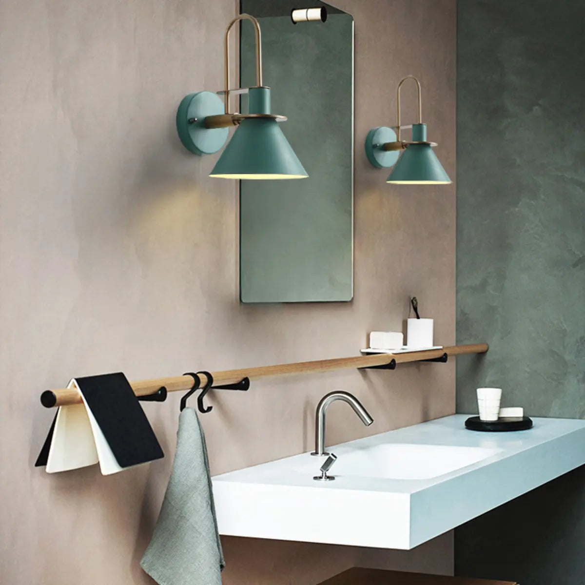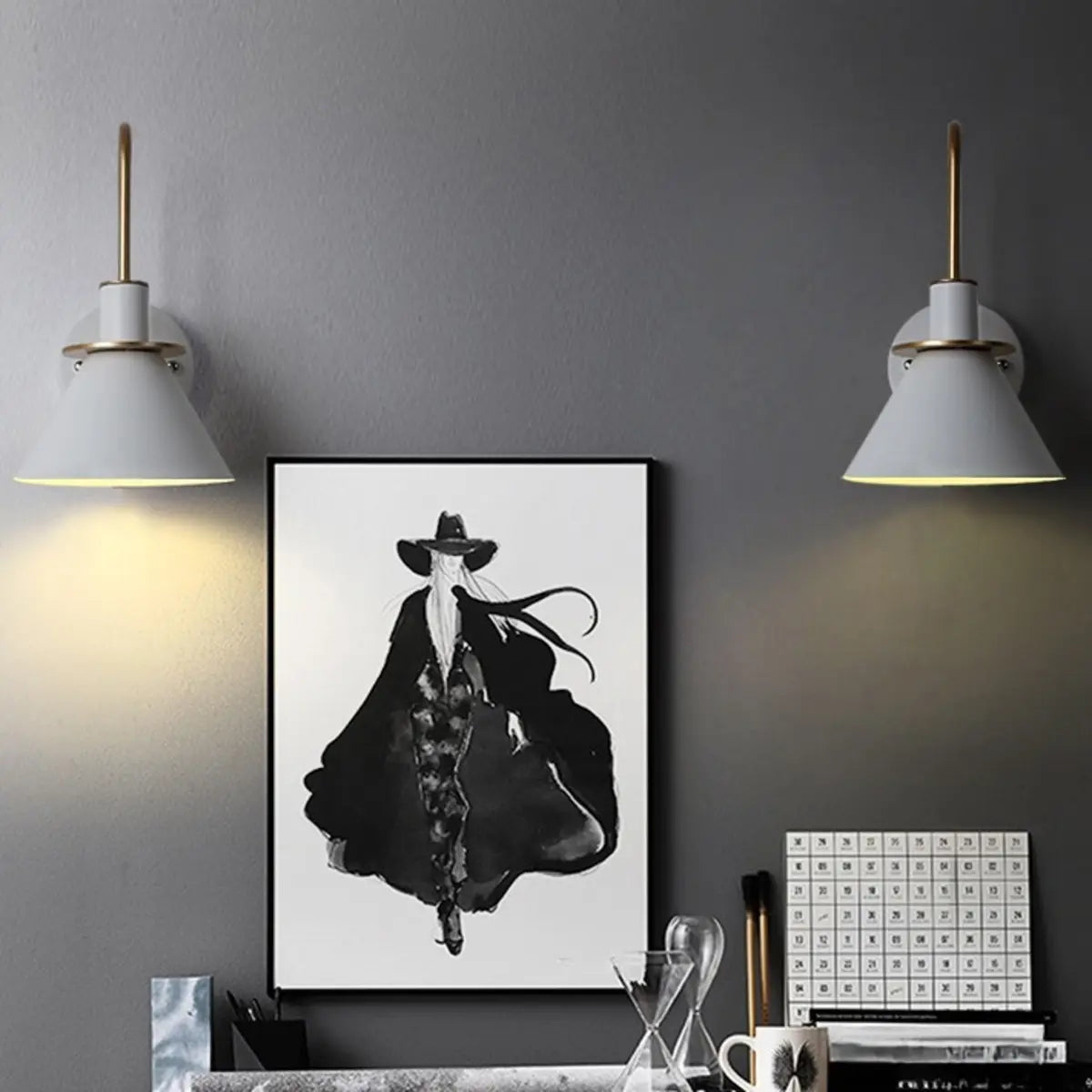 This wall lamp features a modern design with a tapered iron shade, creating a unique minimalist aesthetic that will suit any interior decor style.