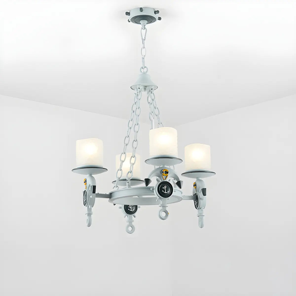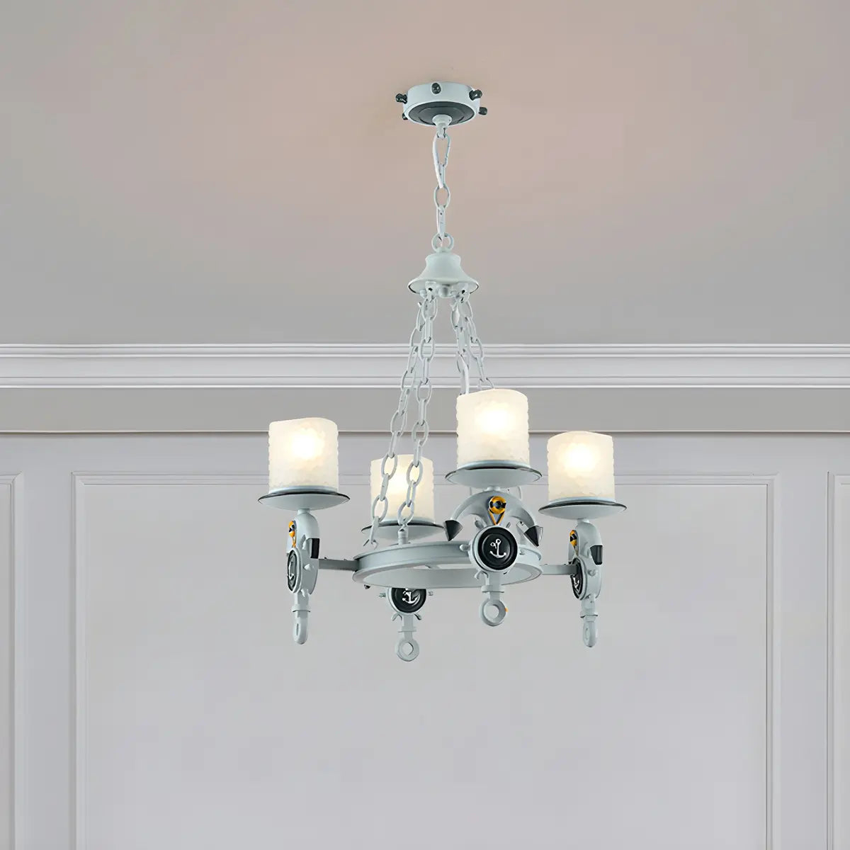 ZOWALA - Blue Anchor Frosted Glass Cylinder Up 5-Light Chandelier