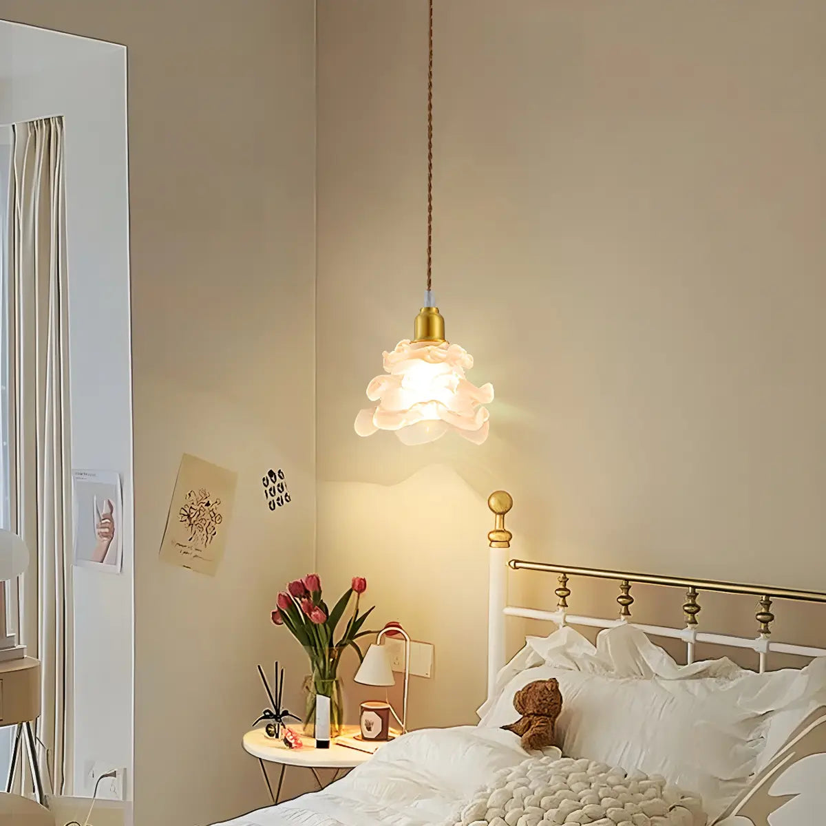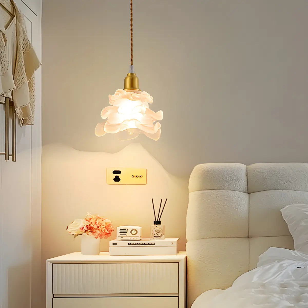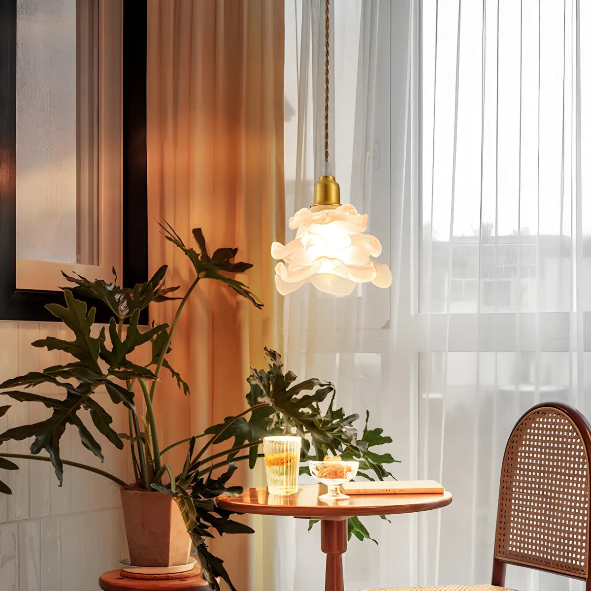 This pendant light features an elegant modern petal glass design, exquisite and artistic, adding warmth and style to your space. Its unique shape is not only a lamp, but also a work of art, which fits perfectly into modern home decoration.