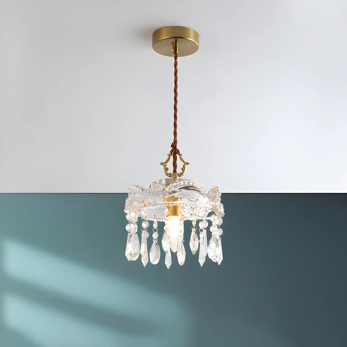 - Made of high-quality gold metal and transparent glass, it ensures durability for long-term use. The glass lampshade transmits light evenly and emits light softly, enhancing the overall atmosphere of the room and improving the visual charm.