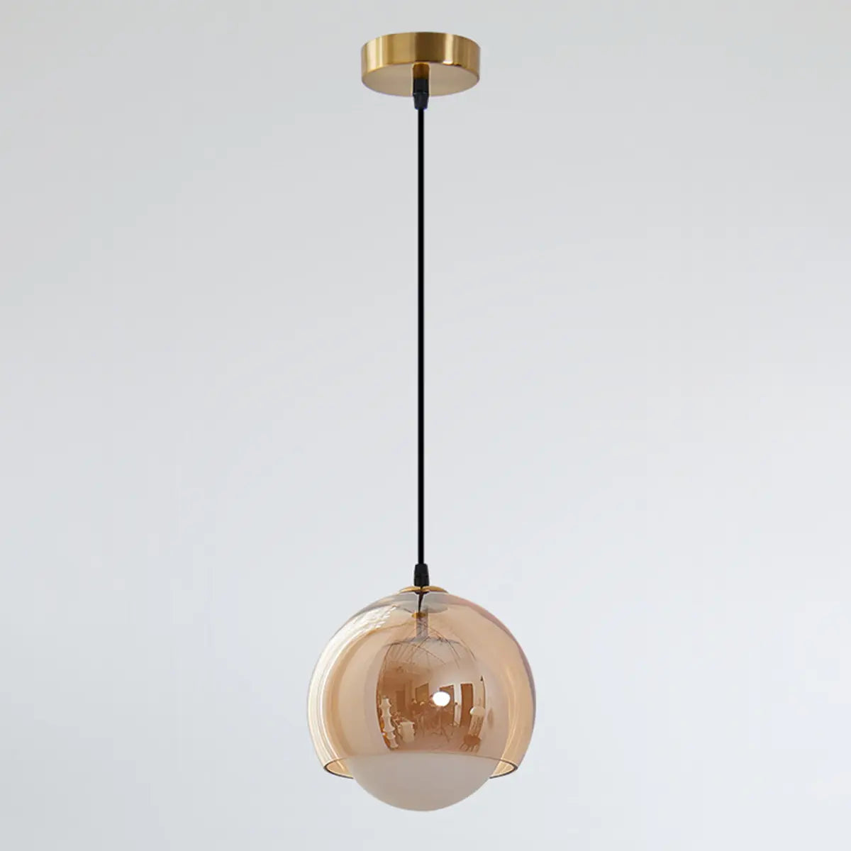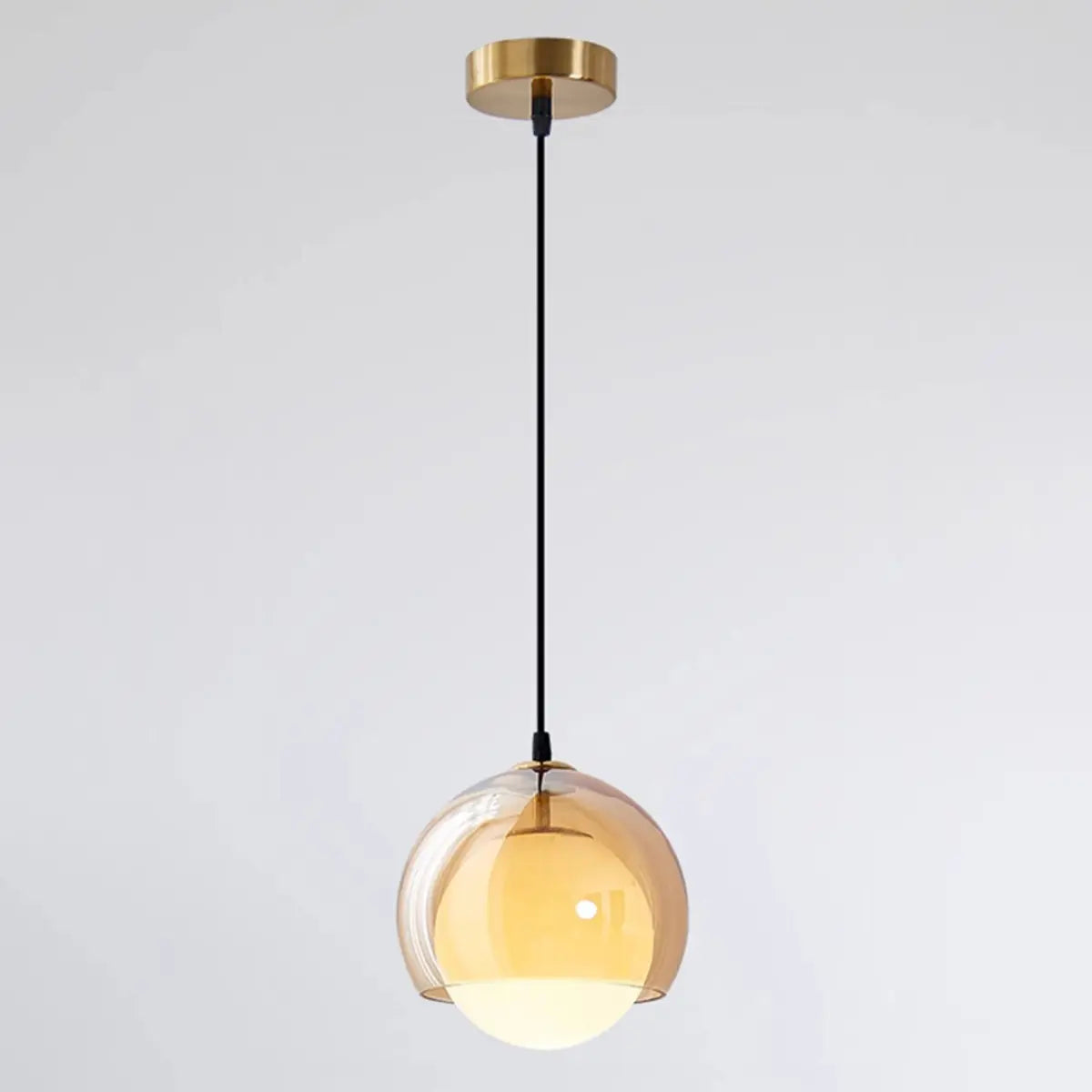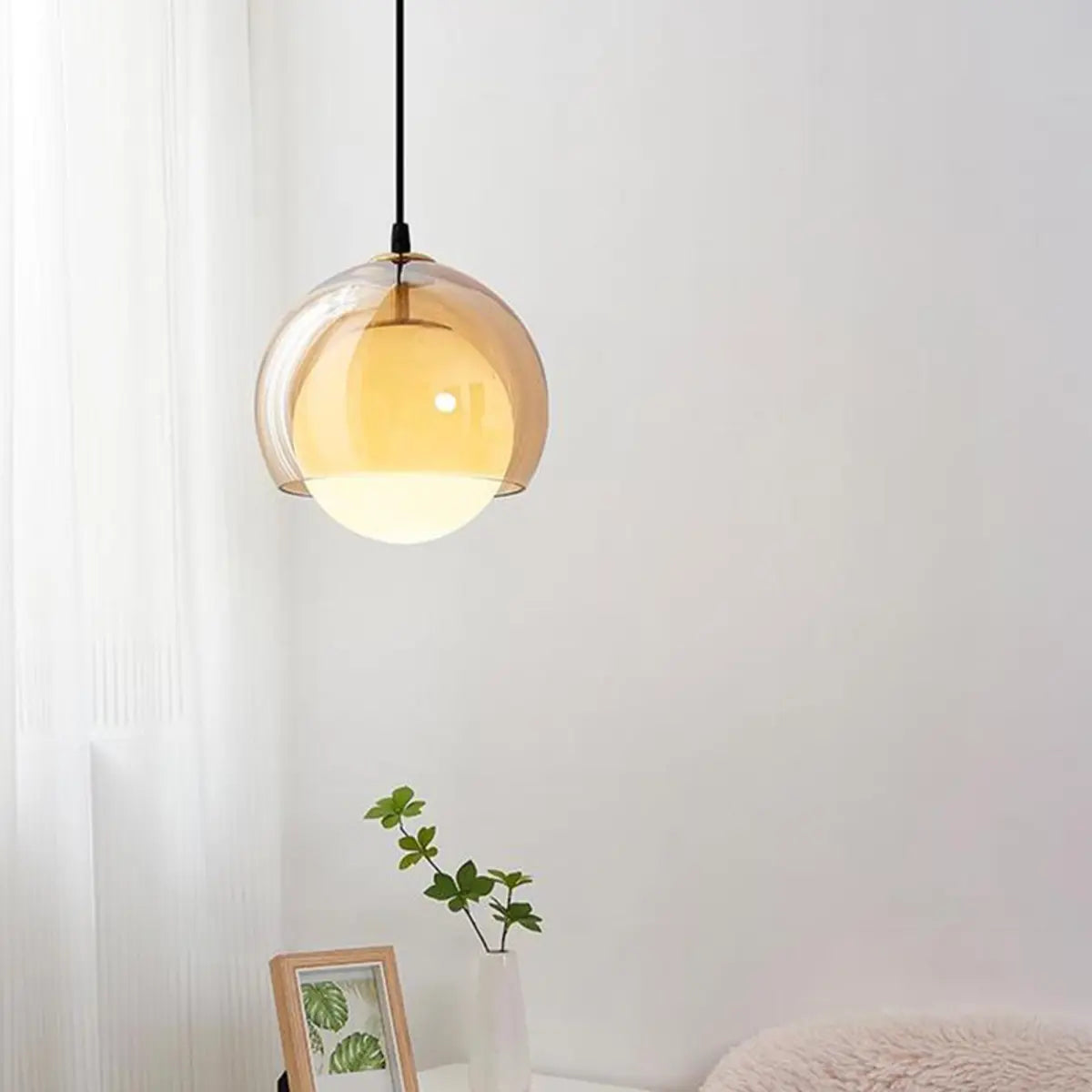 This pendant light adopts a modern design. The transparent amber glass lampshade is elegant and textured. It can add a touch of soft color to the simple home environment and become the visual focus of the space.