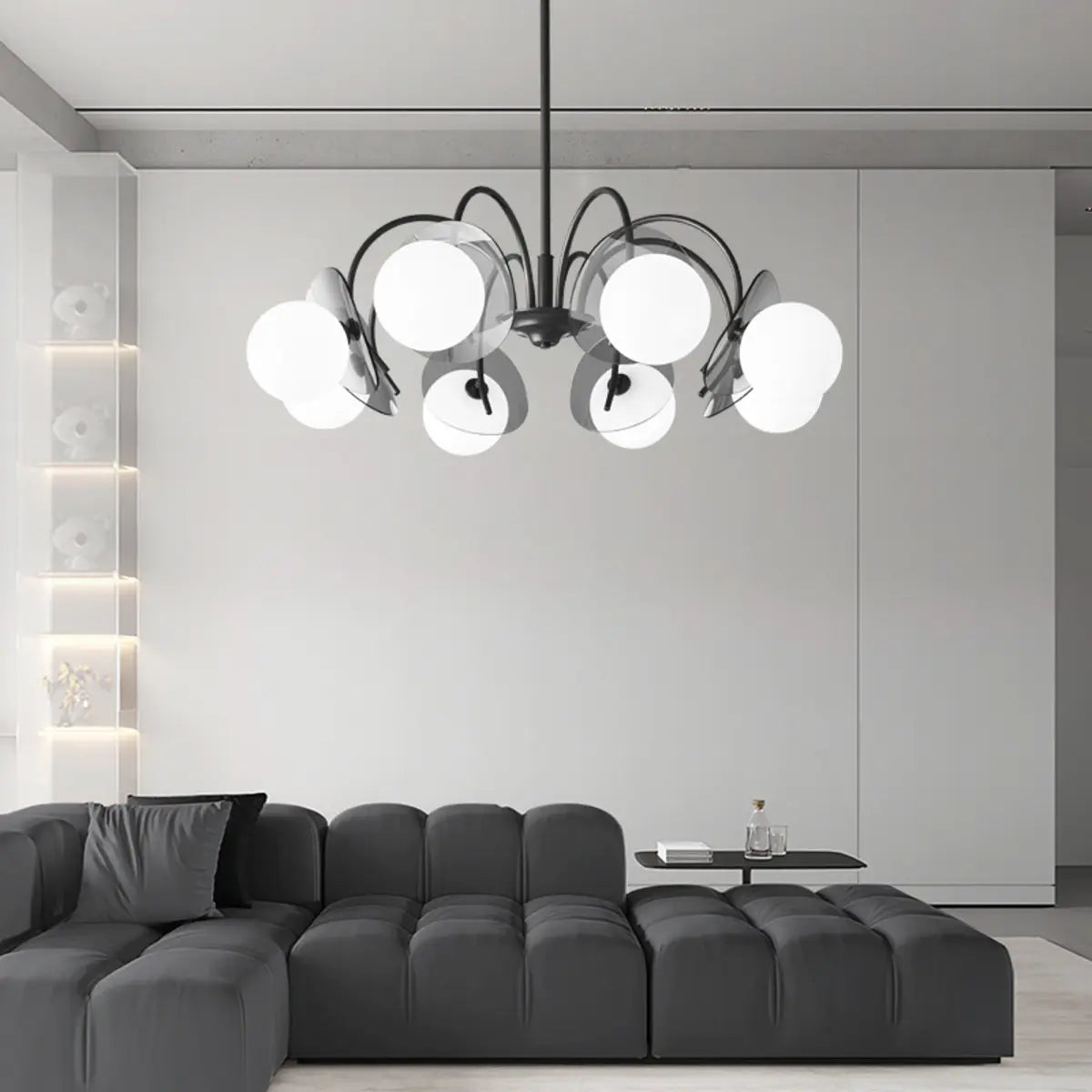 ZOWALA - Modern Black Metal Tray 8-Light Ball Chandelier