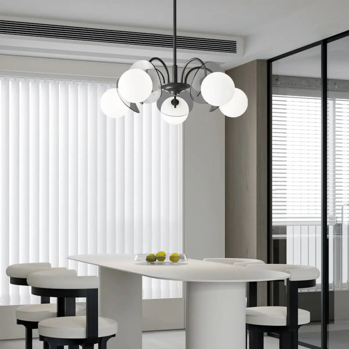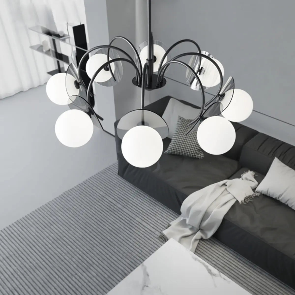 This modern spherical chandelier adds a touch of artistic light to your living space with its simple yet elegant design. Its unique spherical structure and black metal material make it the visual focus of your living room.