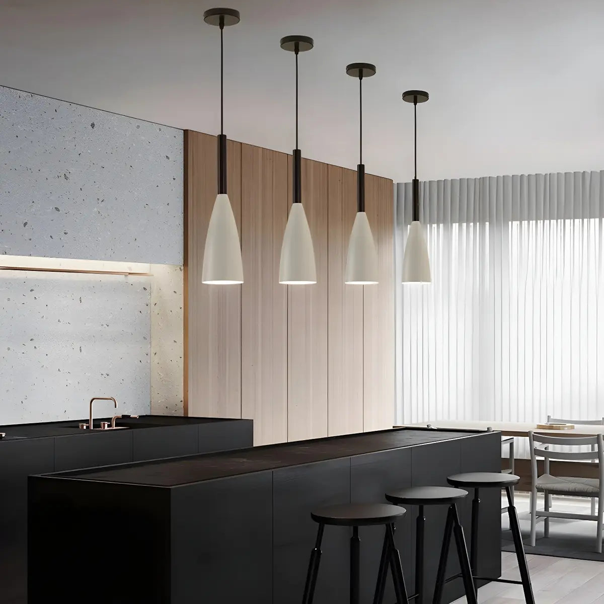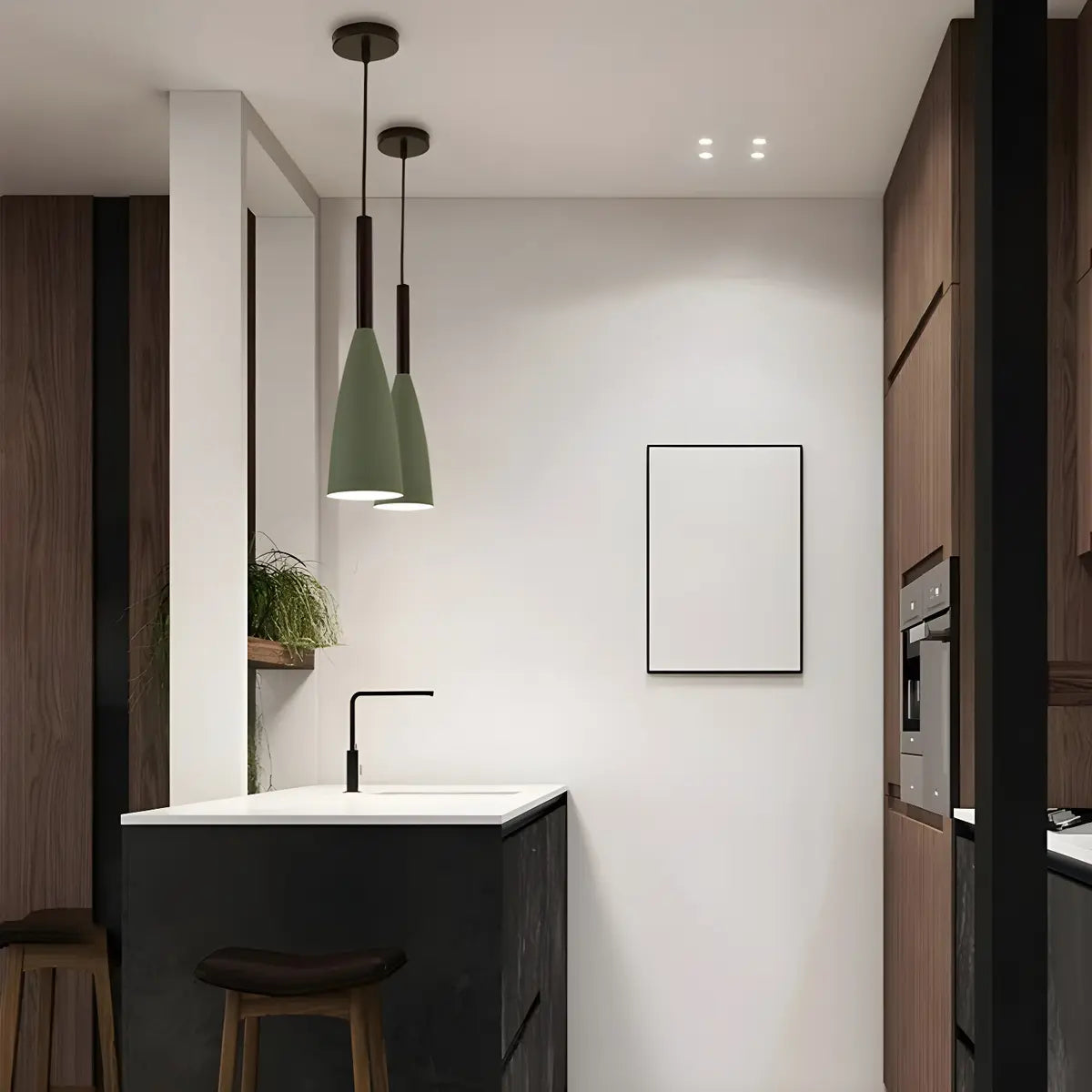 This pendant lamp becomes the highlight of kitchen decoration with its modern conical design and rich color matching. The metal lampshade adds a touch of fashion to the space and blends perfectly with the surrounding environment. Whether used alone or in combination, it can create a warm and elegant atmosphere.