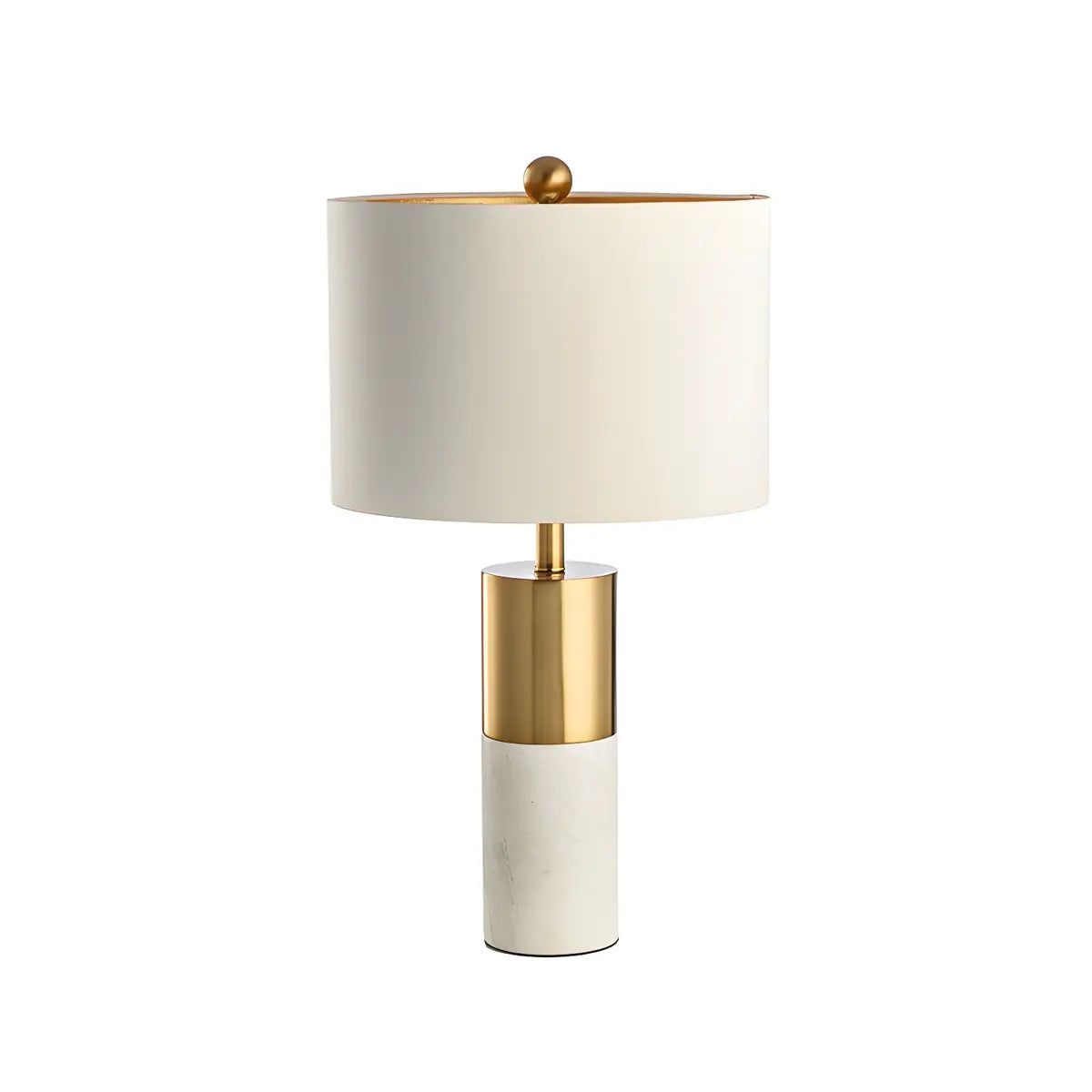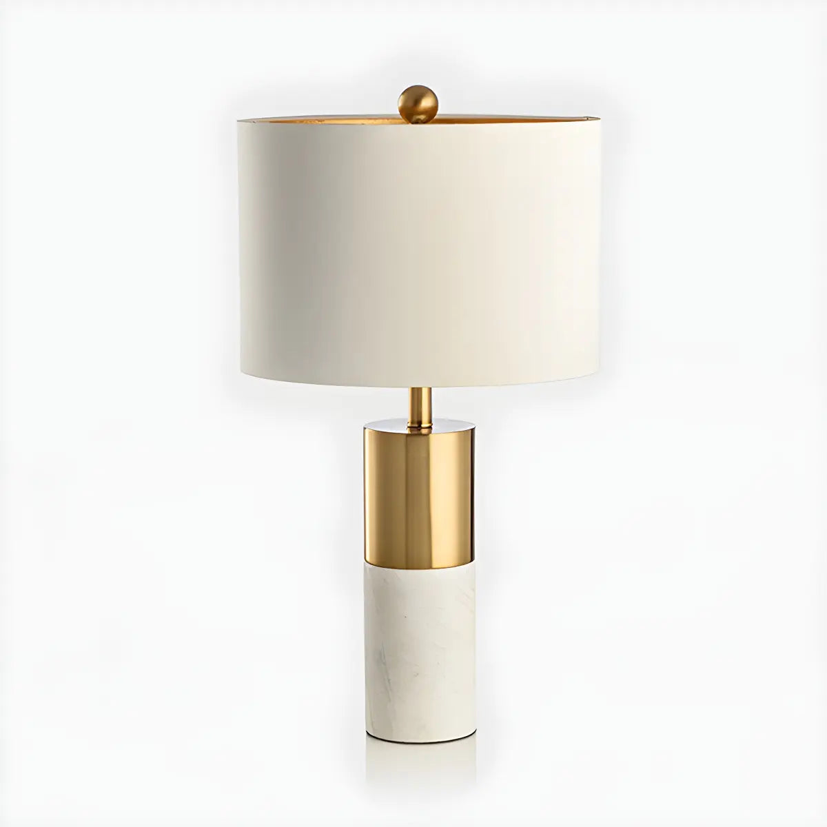 ZOWALA - Modern Marble Cylinder White Fabric Gold Table Lamp