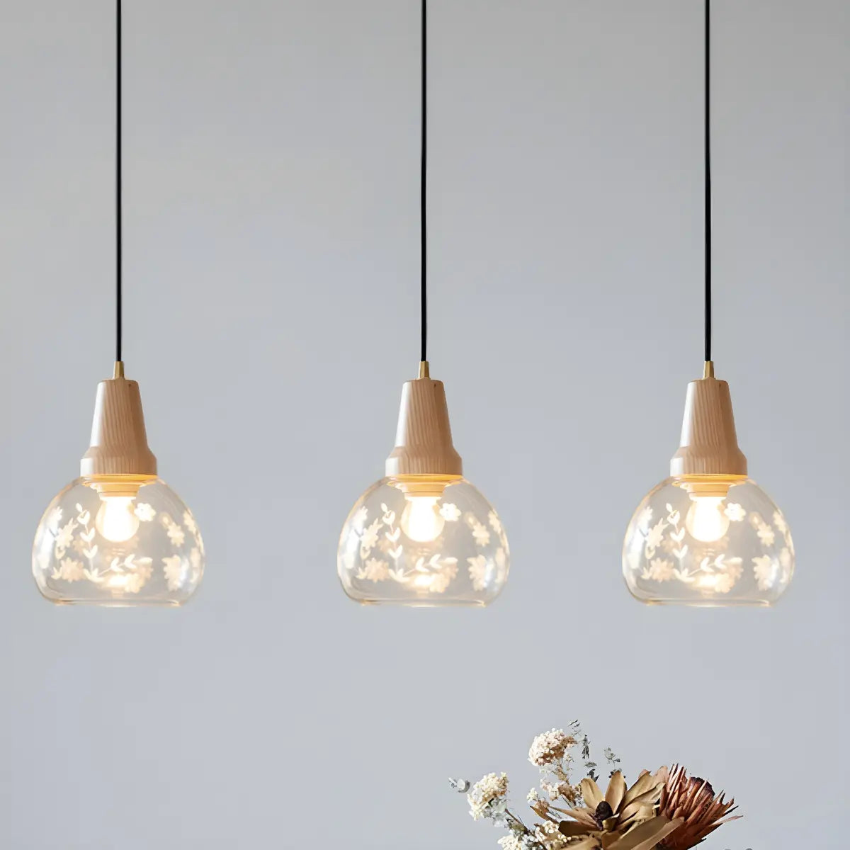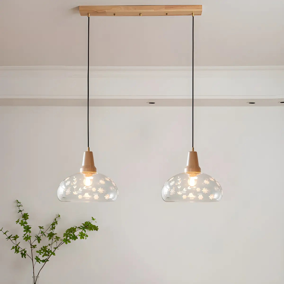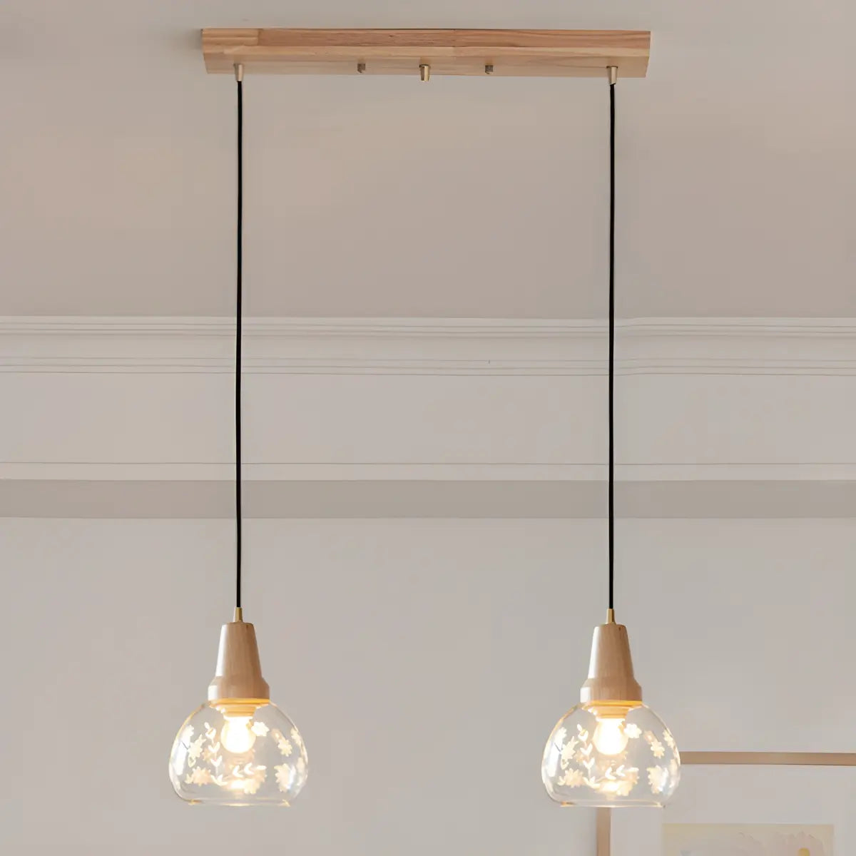 ZOWALA - Wood Color 2-Light Clear Glass Island Light