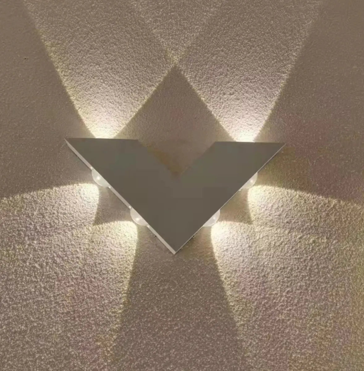 This modern outdoor wall light combines elegant design with excellent practicality, making it an ideal choice for any outdoor space. Its V-shaped geometric shape is not only beautiful, but also can achieve a two-way lighting effect up and down, adding a unique visual appeal to your patio or garden.