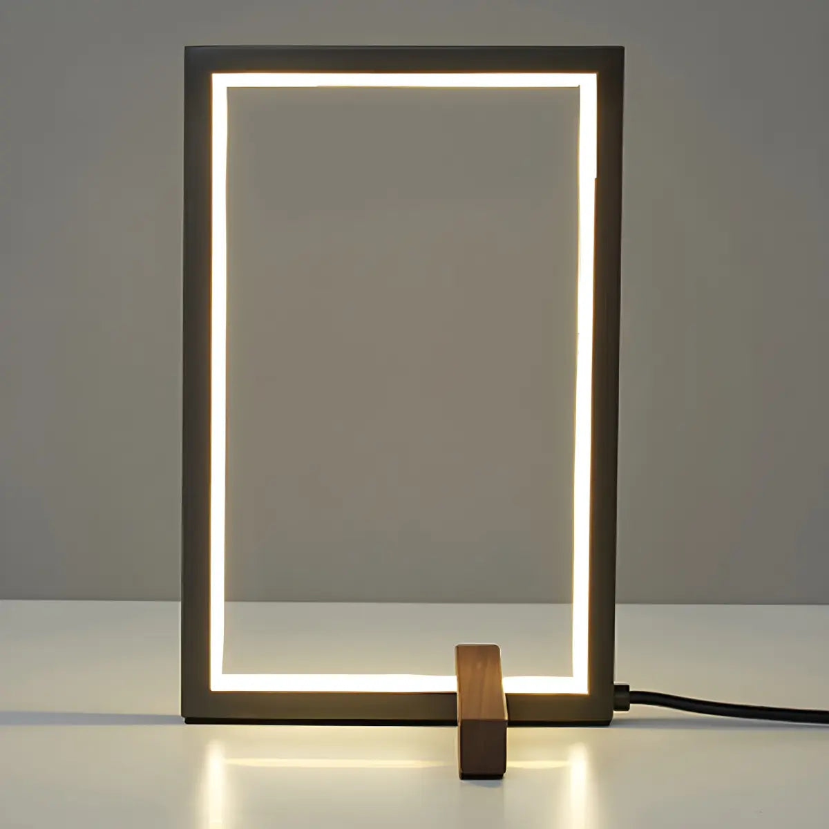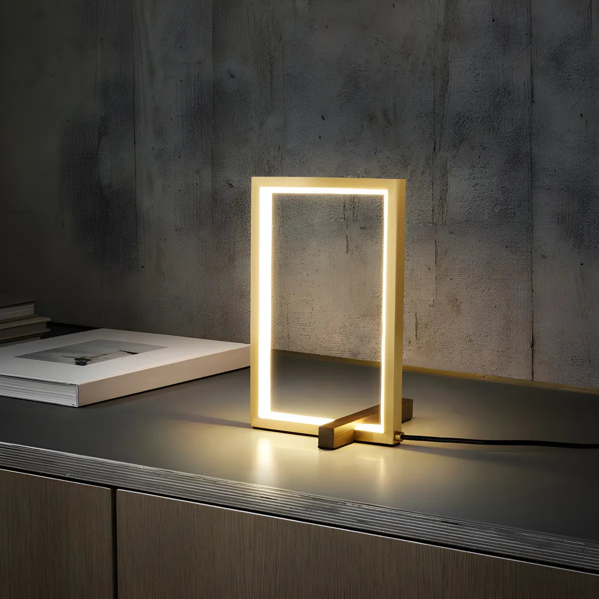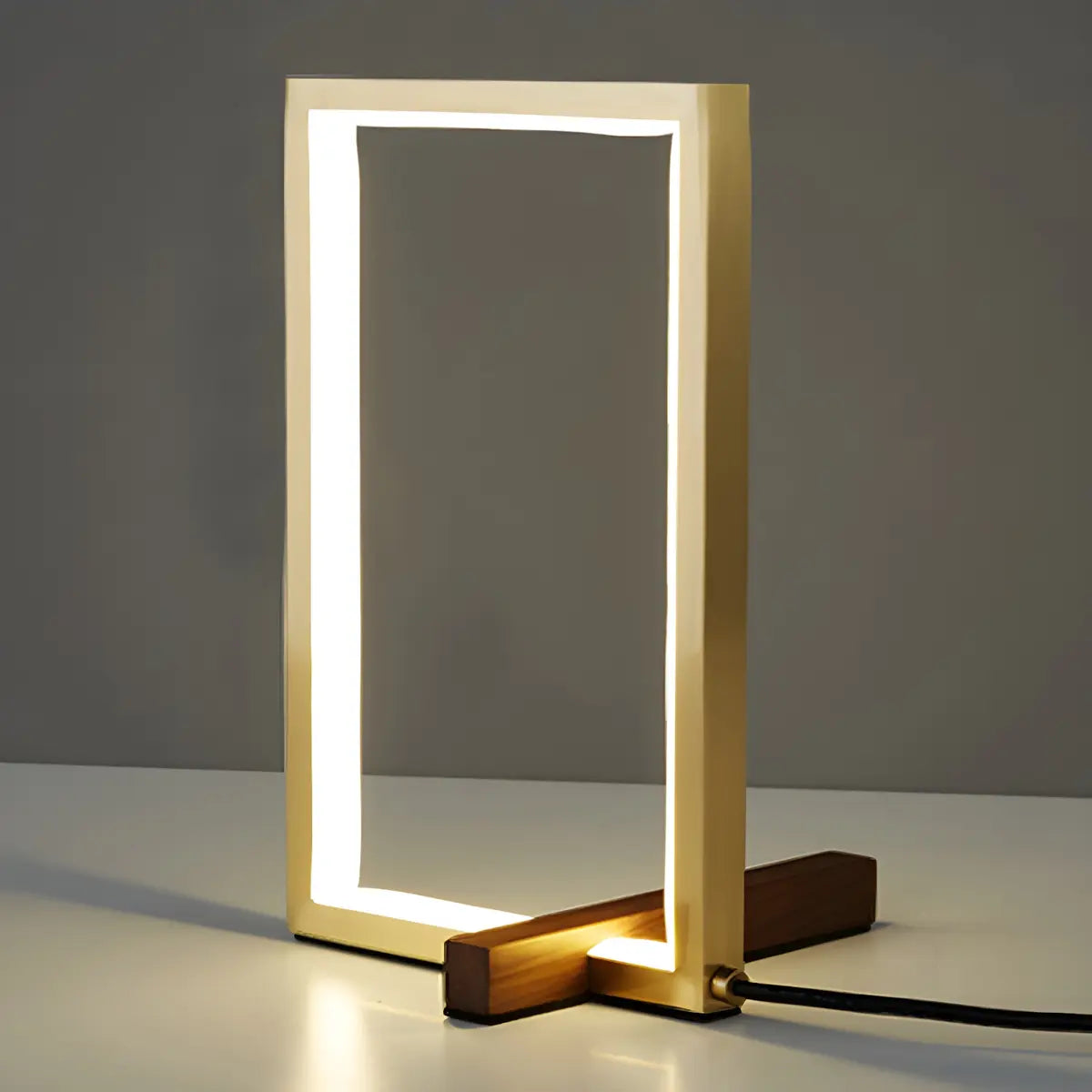 This modern and simple rectangular metal frame table lamp is an ideal decorative choice for the bedroom with its exquisite design and efficient LED bulb.