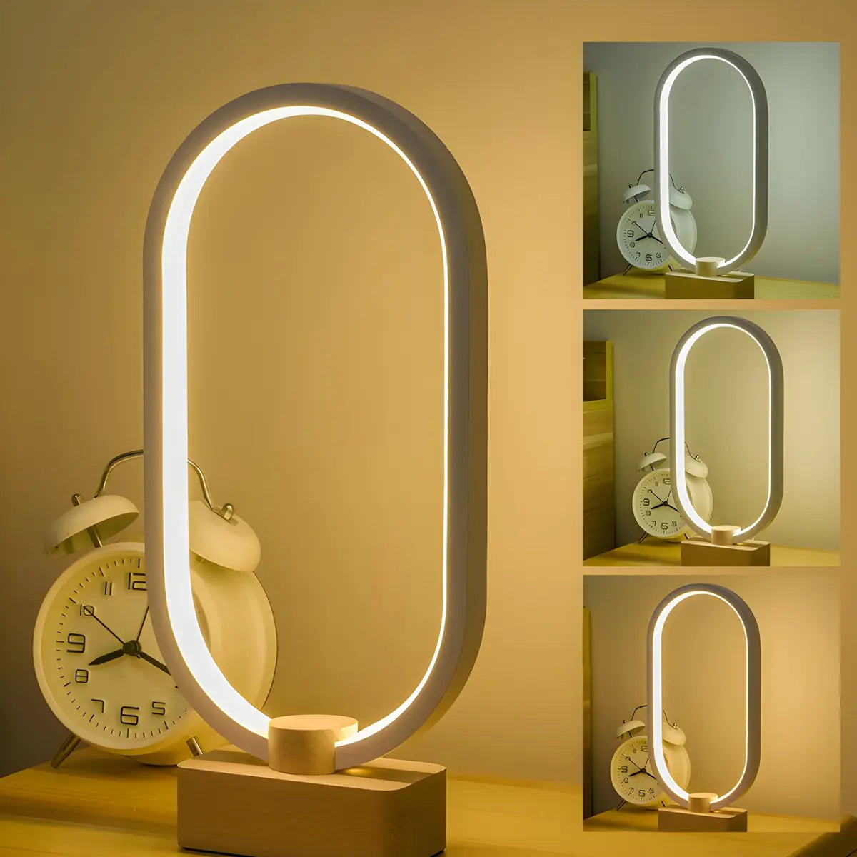 This minimalist white oval LED table lamp has a modern design and is suitable for various interior decoration styles, especially modern minimalist or industrial style spaces.