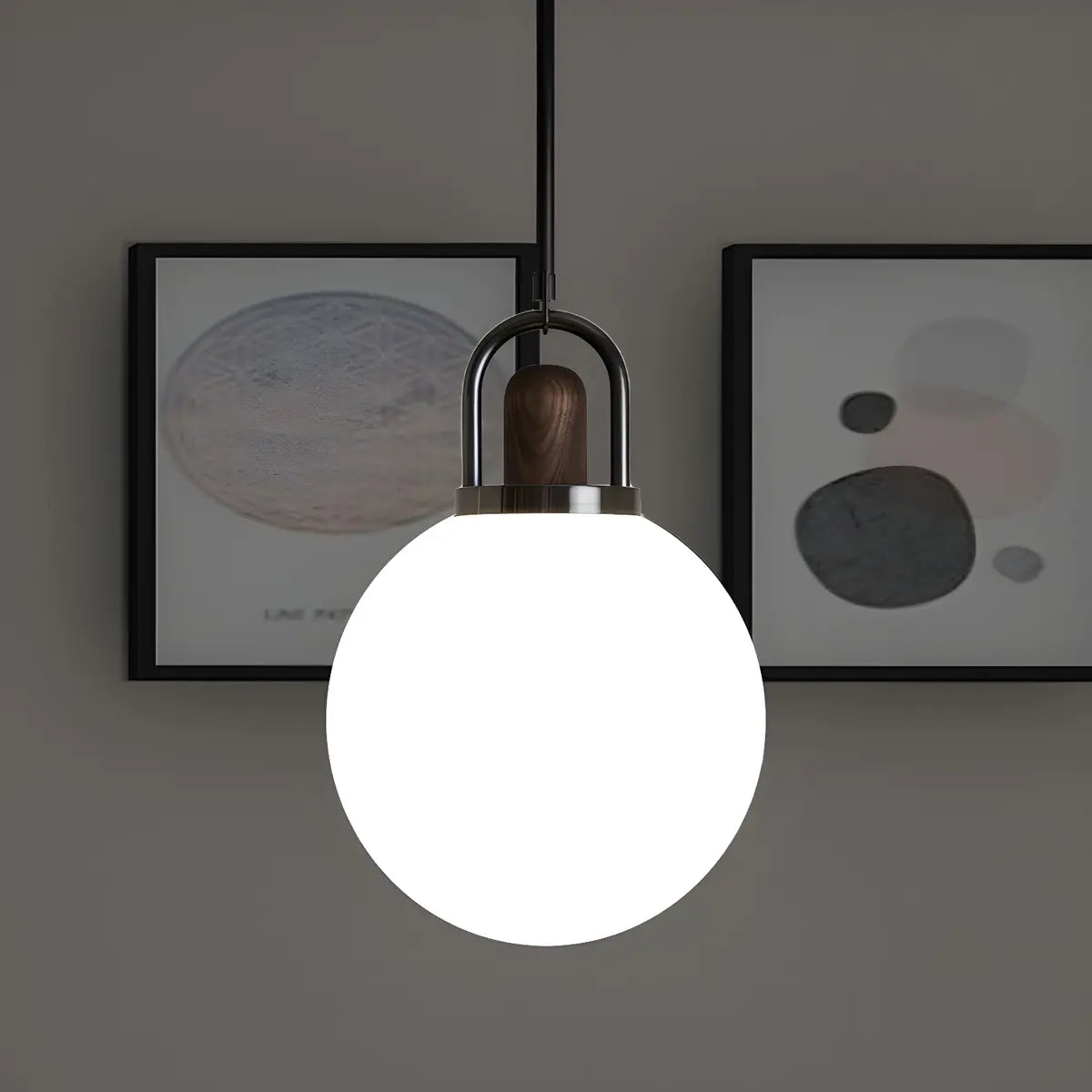 This unique pendant lamp features a modern black glass sphere as the lampshade, perfectly integrated with wooden details, presenting a simple and elegant visual experience. Its rounded shape not only enhances the decorative effect but also adds a touch of warmth and style to any kitchen environment.