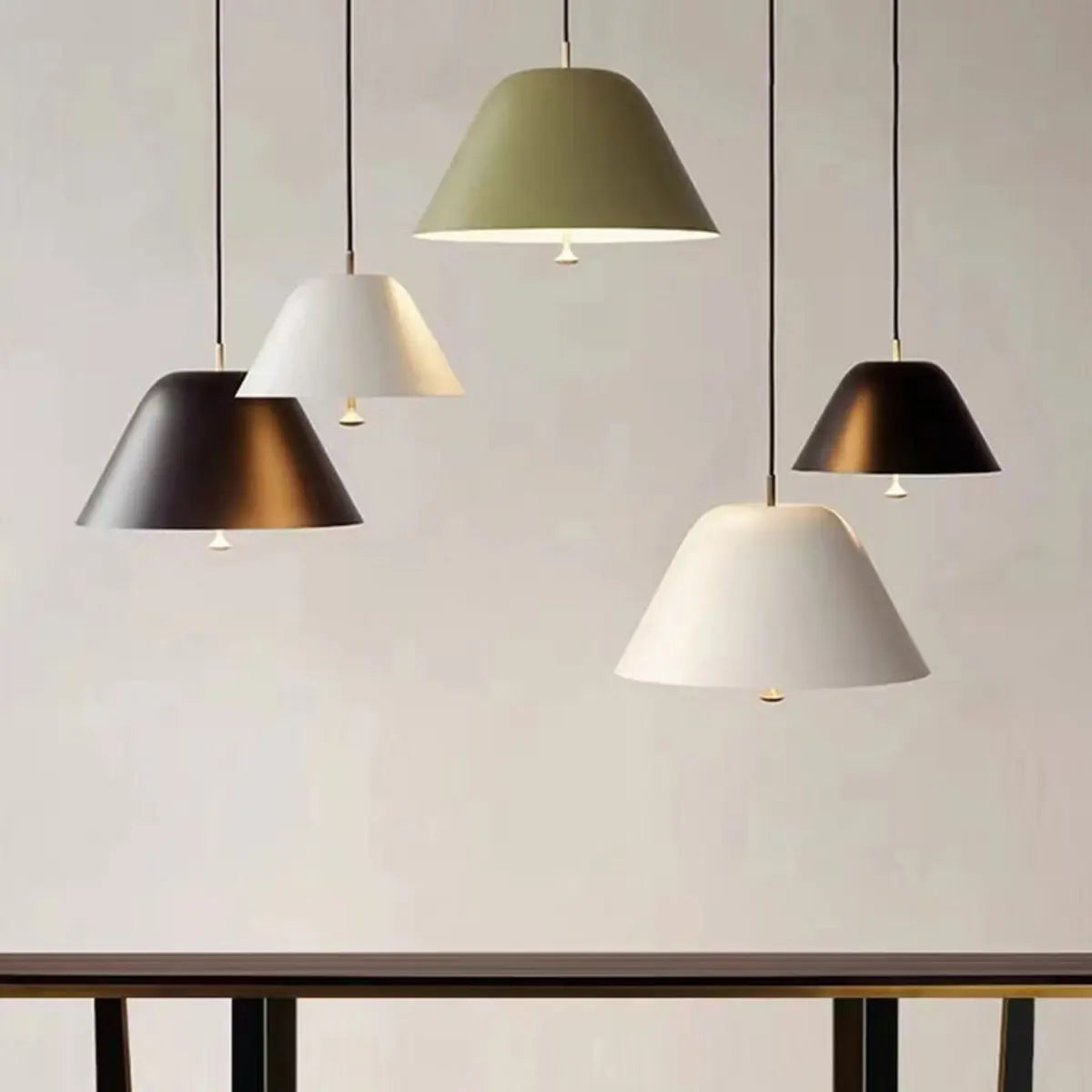 This modern minimalist style chandelier uses a conical glass lampshade, with a simple and elegant design and a unique and fashionable color combination. The lampshades of different colors complement each other, showing a unique visual beauty and creating a fresh and natural atmosphere for the space. The elegant appearance lines exude an unparalleled simple temperament and can be perfectly integrated with various styles of interior decoration atmosphere.