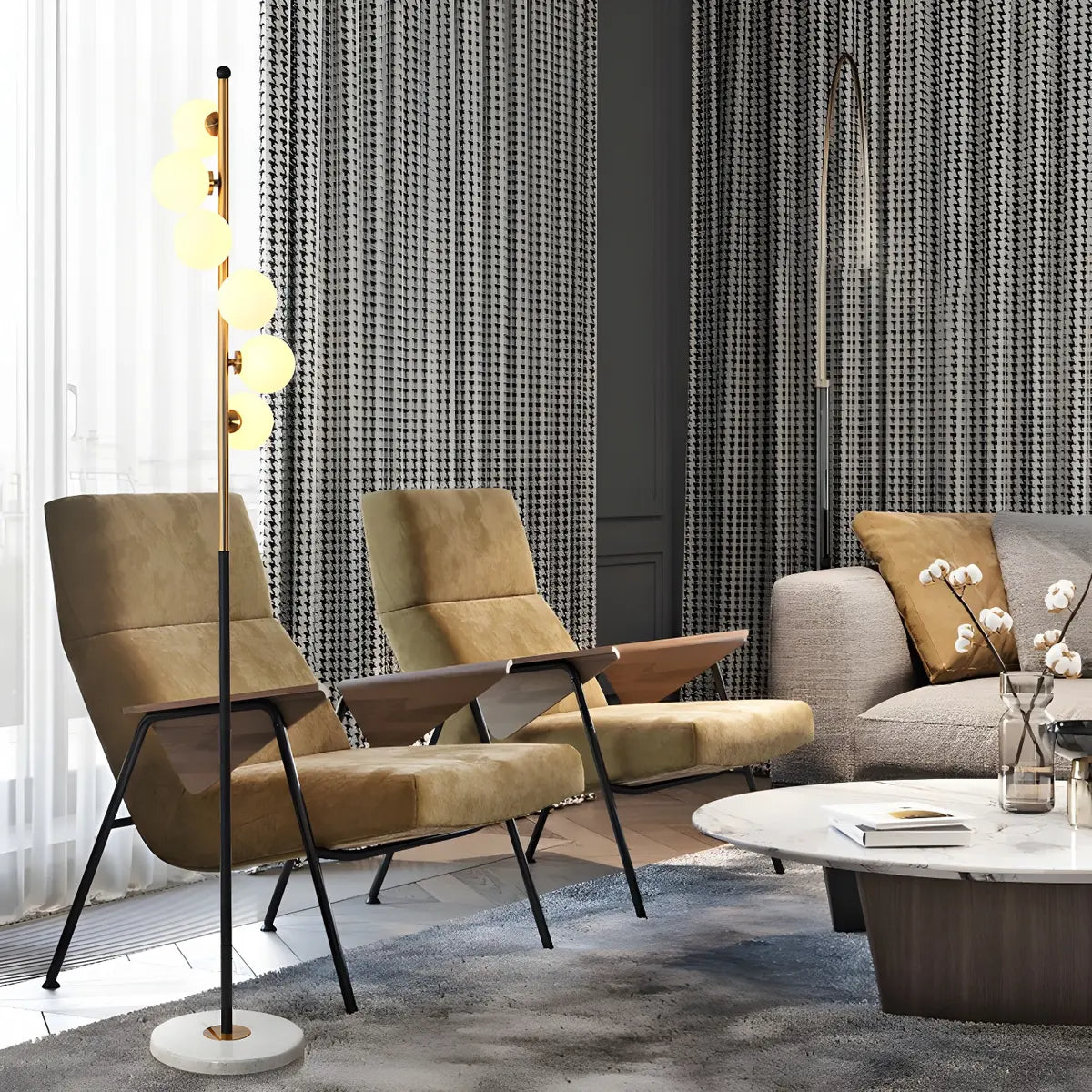 ZOWALA - Modern Multi-Light Spiral Glass Globe Floor Lamp