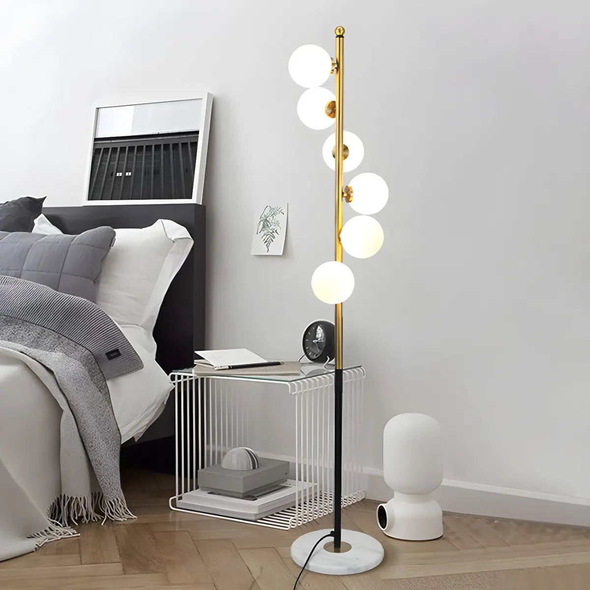 - The floor lamp is made of metal and glass lampshades, with a stable and durable structure to ensure safety and reliability for long-term use.