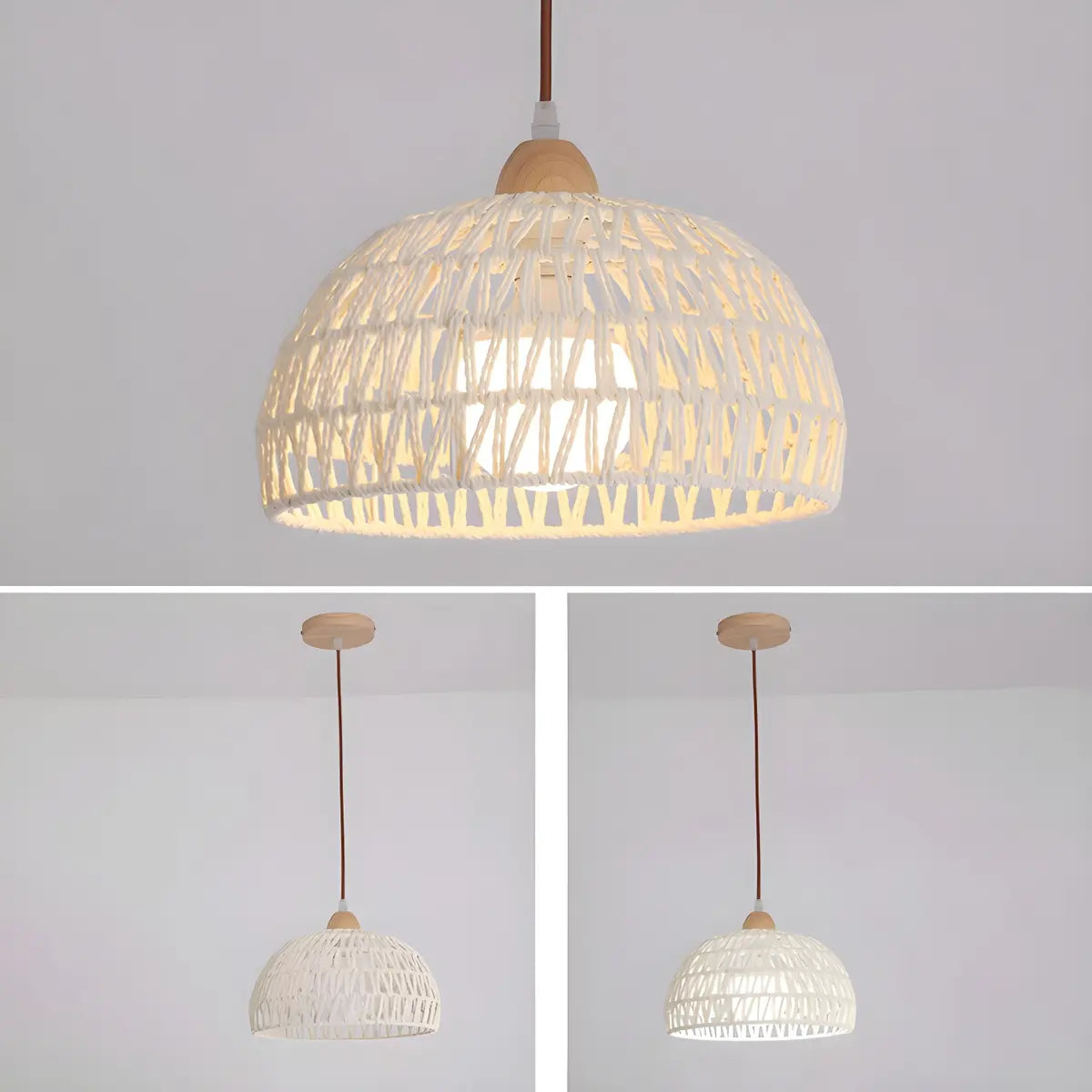ZOWALA - Modern Off-White Woven Dome Pendant Light