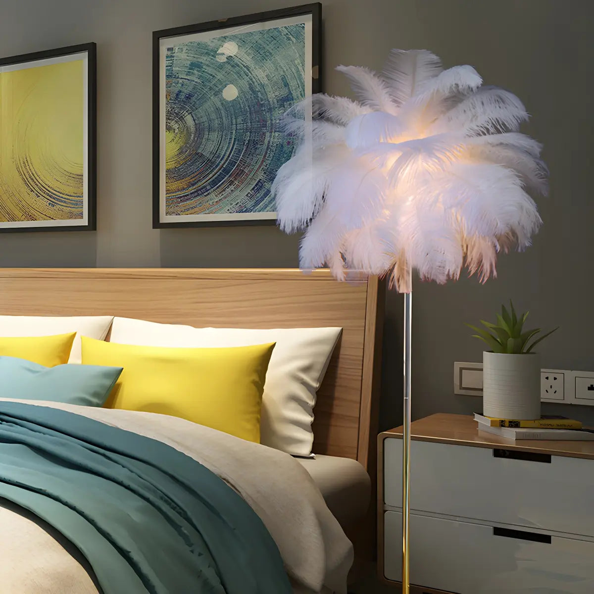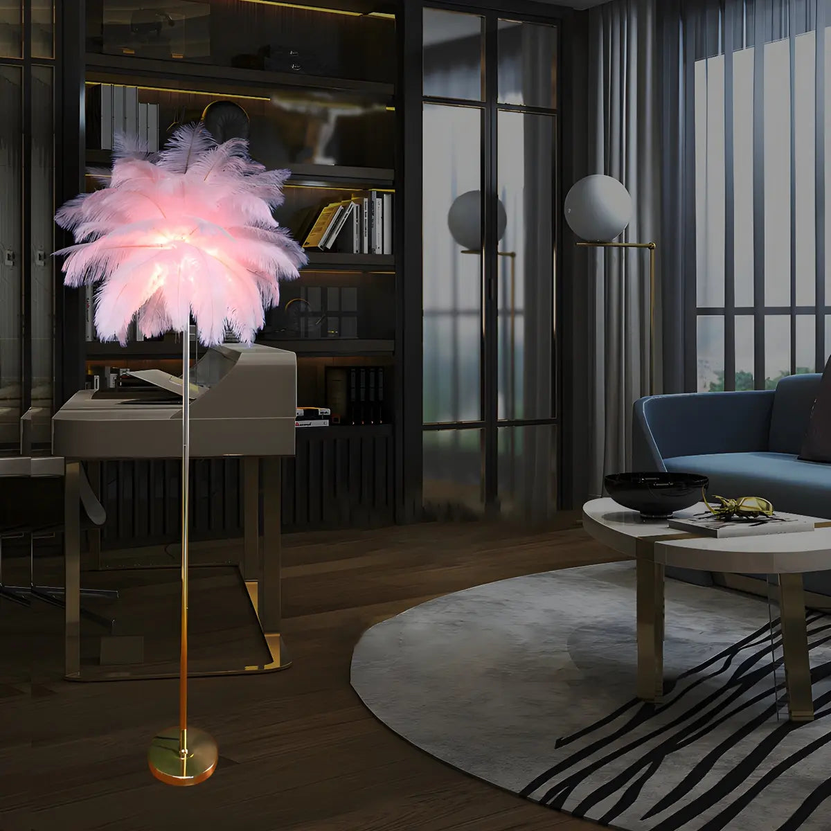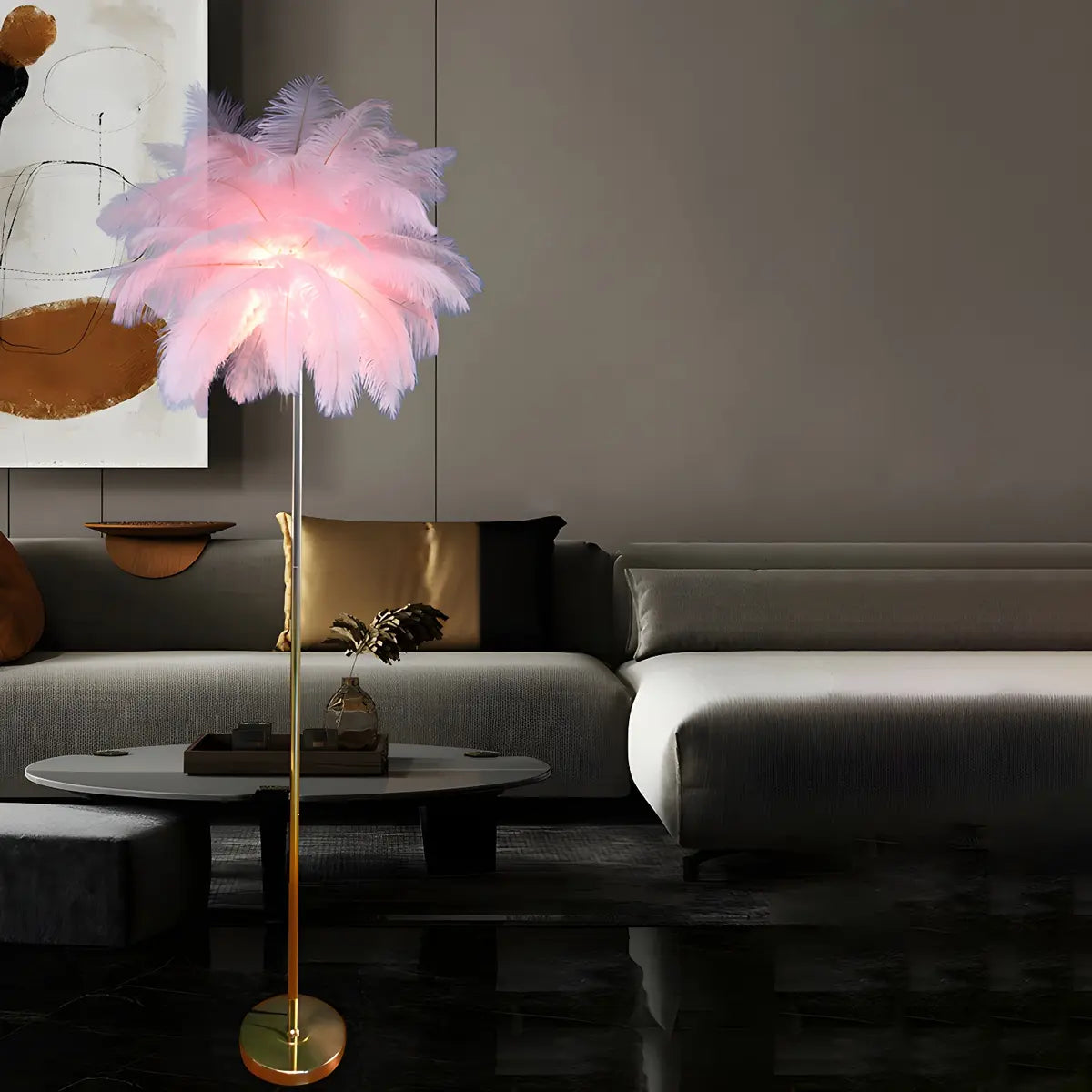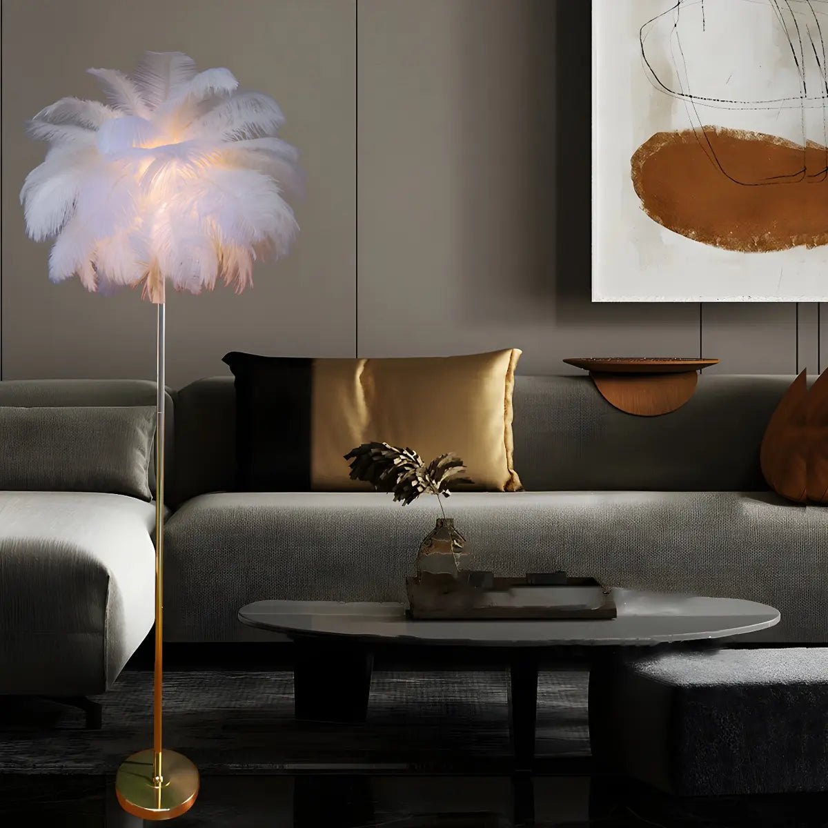 This modern feather floor lamp is a highlight in home decoration with its elegant appearance and excellent functionality, suitable for creating a warm atmosphere in the living room and bedroom.
