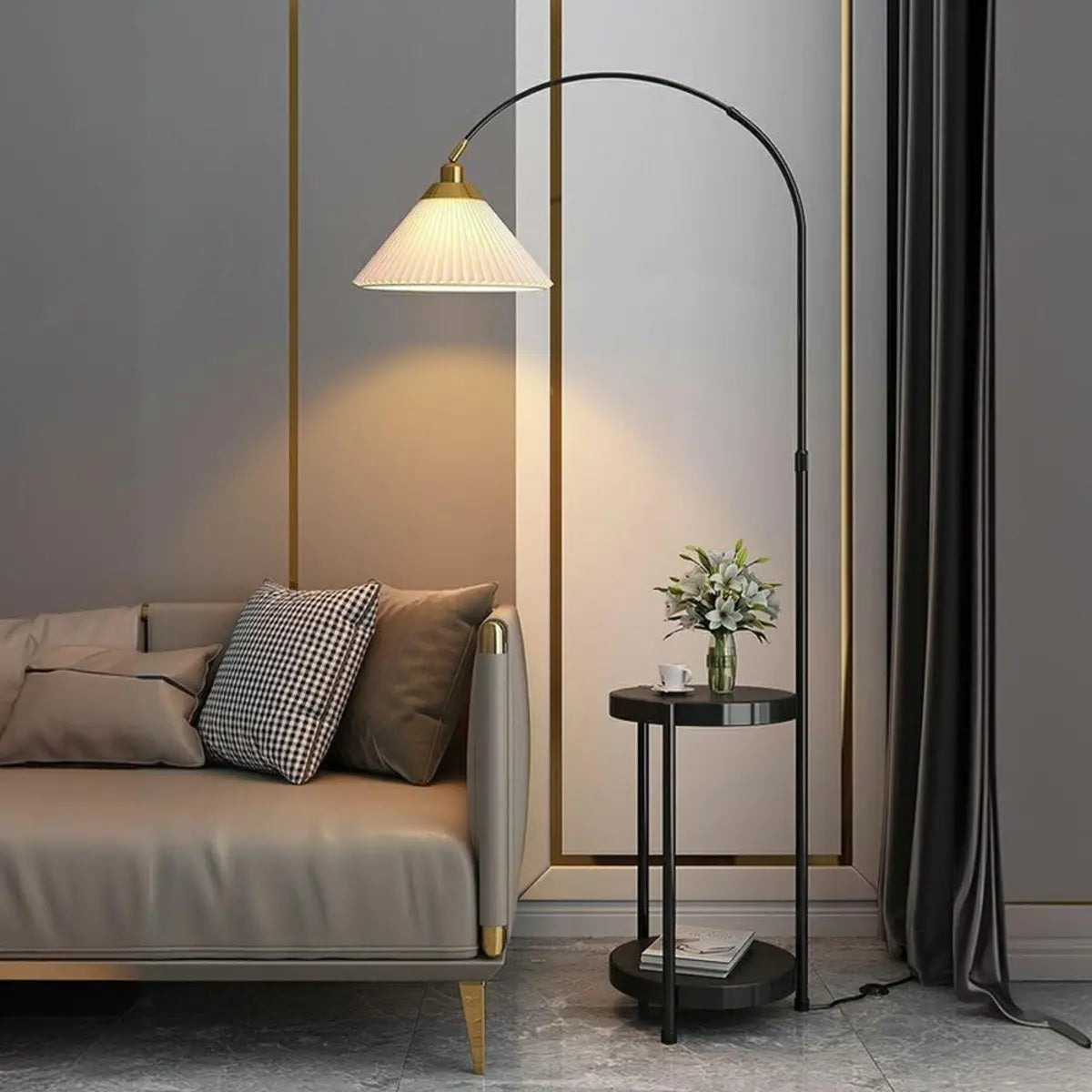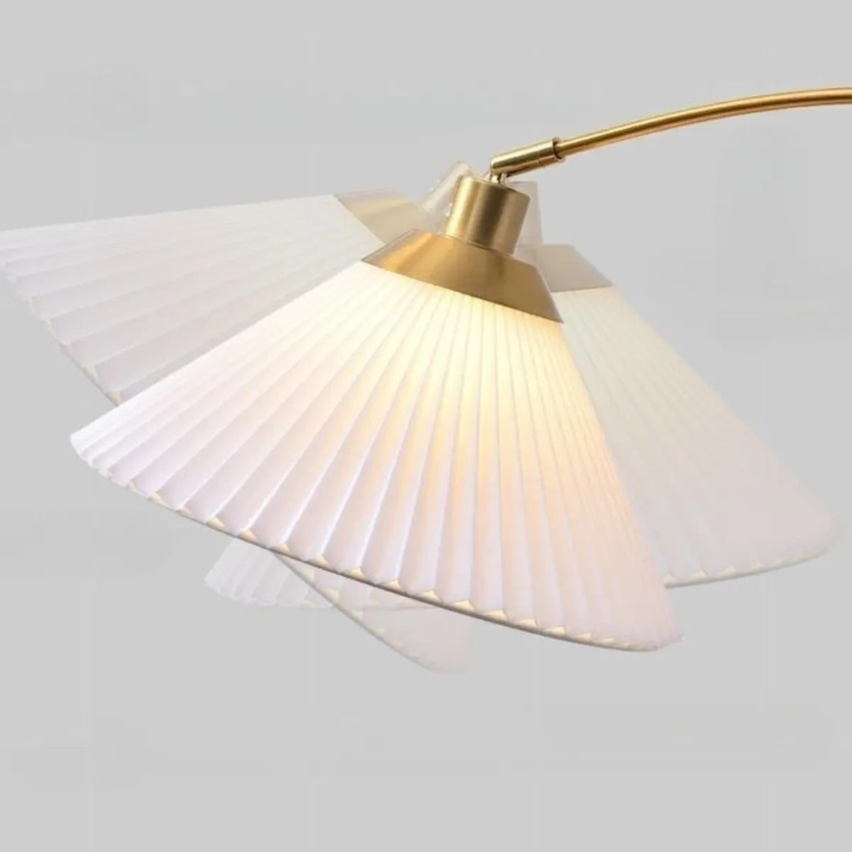 ZOWALA - Modern Pleated Gold Arc Floor Lamp with Shelves