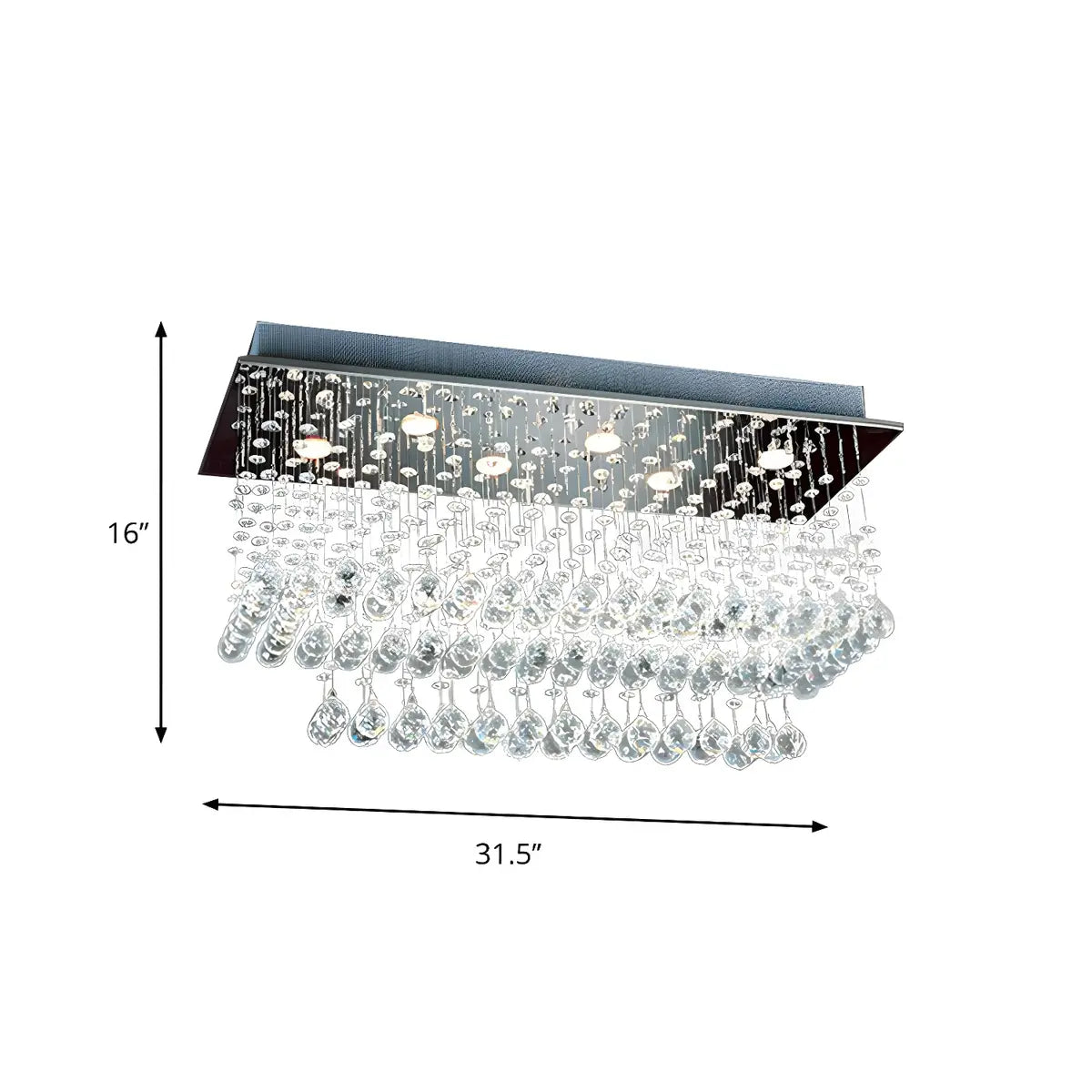 ZOWALA - Modern Rectangle 6-Light Nickel Crystal Flush Mount Light