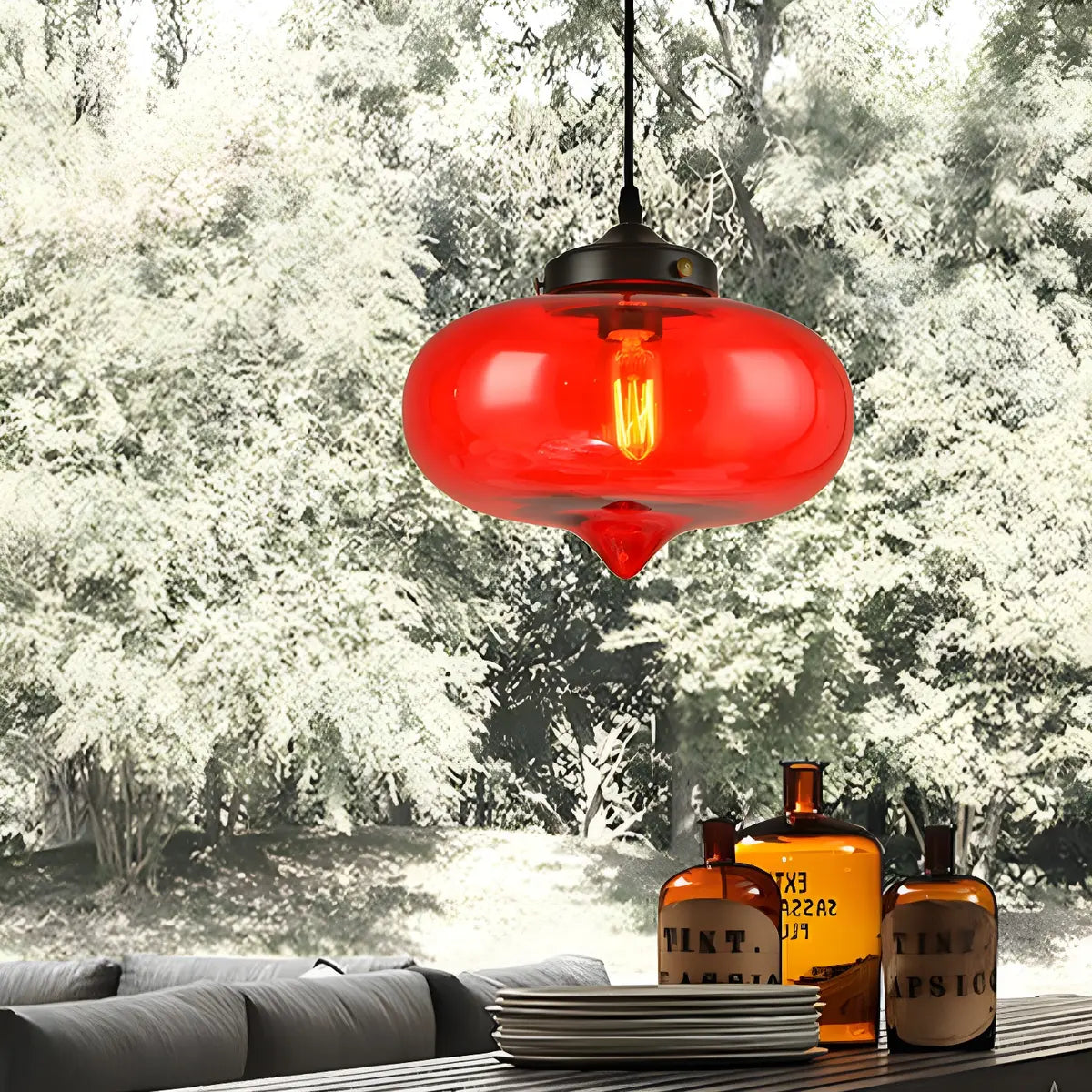 ZOWALA - Modern Red Glass Onion Pendant Light